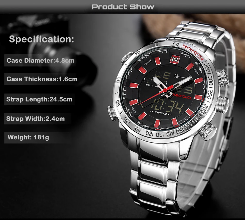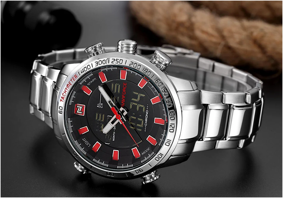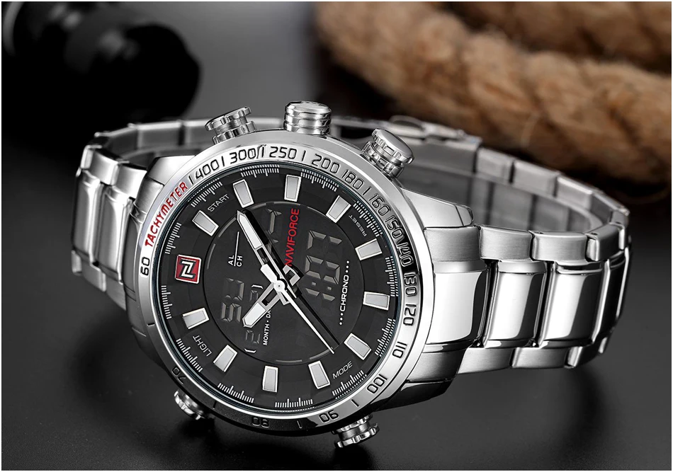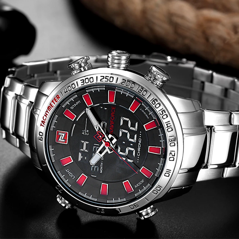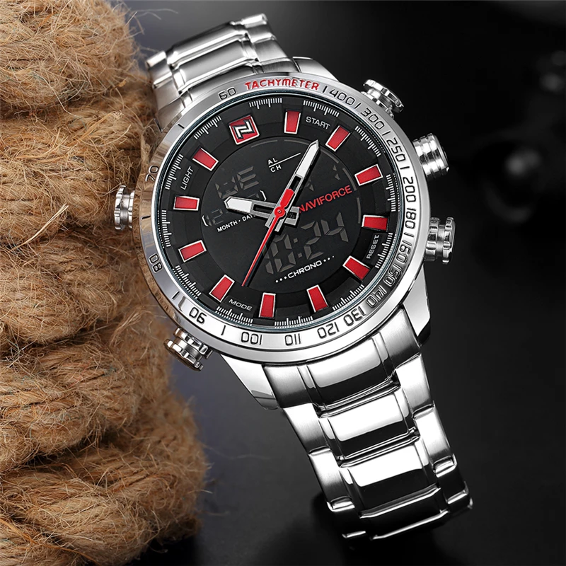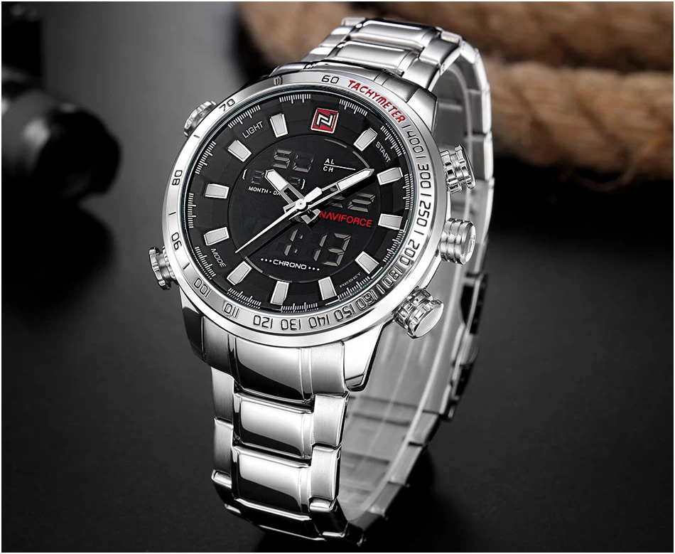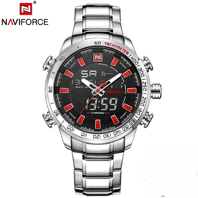 Часы наручные Naviforce Мужские кварцевые, роскошные деловые Брендовые спортивные водонепроницаемые полностью стальные