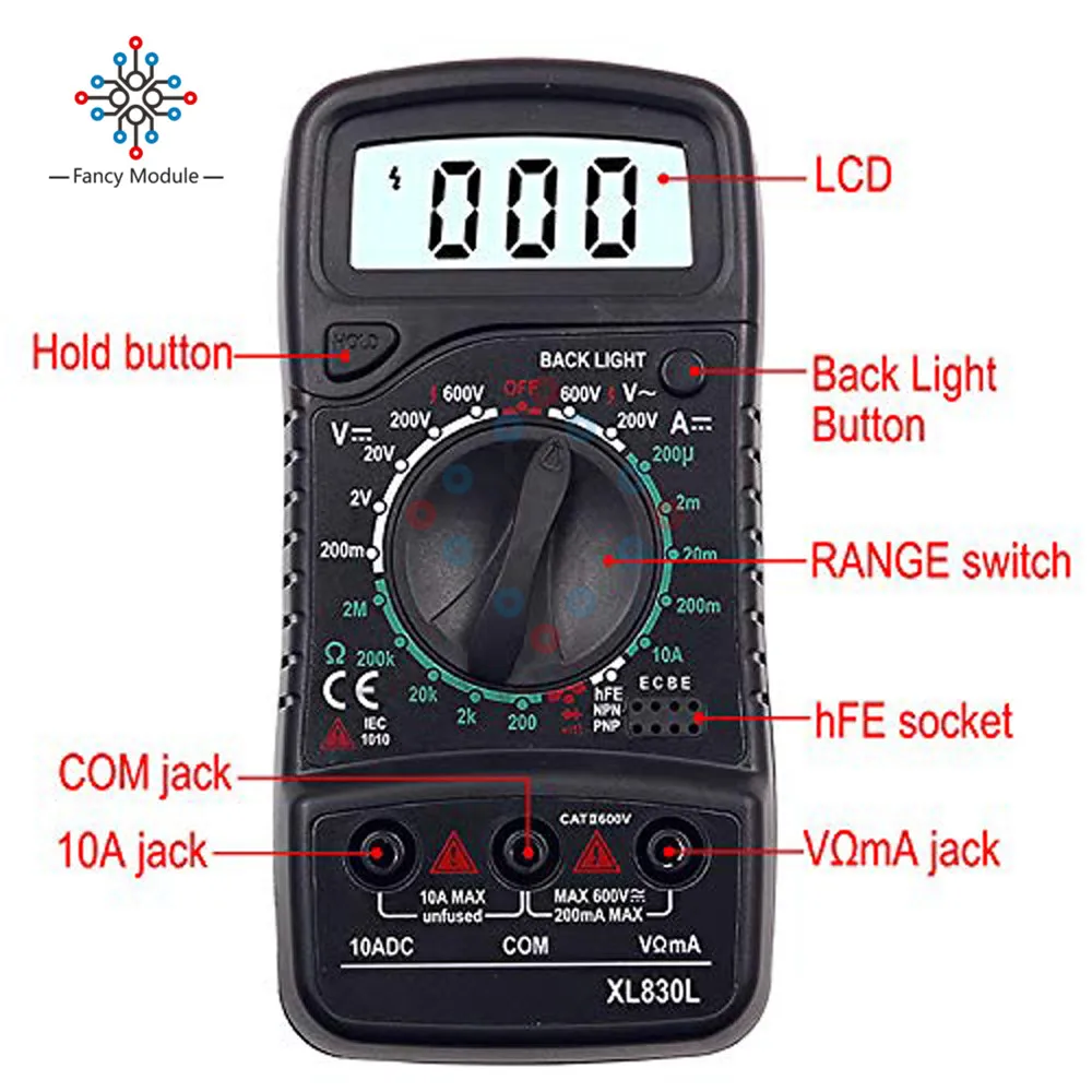 Мультиметр XL830L, ЖК-дисплей, подсветка, портативный амперметр переменногопостоянного тока, вольтметр, тестер напряжения
