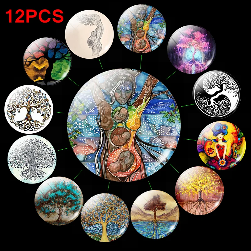 Магнит на холодильник Дерево жизни, 30 мм, Инь Янь, стеклянный кабо...