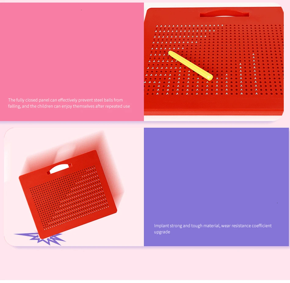 Описание:Цвет: черный/красныйМатериал: АБС + стальной шарик + магнитМаленький -- доска из бисера: 21х17смШарик: 19x20 (380 магнитов)Подходящий возраст: 3-6 лет (для детей)/7-14 лет (для подростков)Использование: детские игрушки, магнитные Стальные Бусины, пластиковая доска Особенности:-Обучающий инструмент для развития интеллекта и креативности вашего ребенка* Использует магнитное свойство для рисования форм, букв, изображений на поверхности* Неудержимый и увлекательный обучающий инструмент для развития интеллекта ваших детей, направляющий вашу дочь или сына на путь создания-С магнитным стилусом, чтобы всплыть Стальные Бусины-Со стилусом для удобного хранения Упаковочный лист:1 х доска для рисованияСтилус-1 шт.