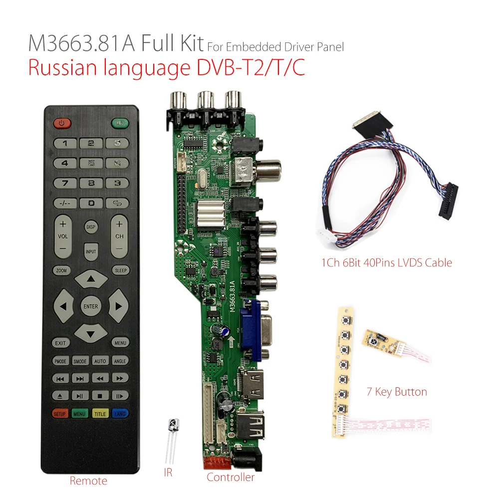 Универсальный ТВ-контроллер M3663.81A, комплект платы драйвера для цифрового сигнала DVB-C сигнала DVB-T, с 40-контактным lvds кабелем 1ch 6bit