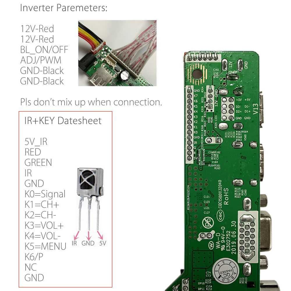 Этот комплект работает только для светодиодной панели 1366x768 с 1-канальным 6-битным 40-контактным сигнальным интерфейсом и встроенной подсветкой.