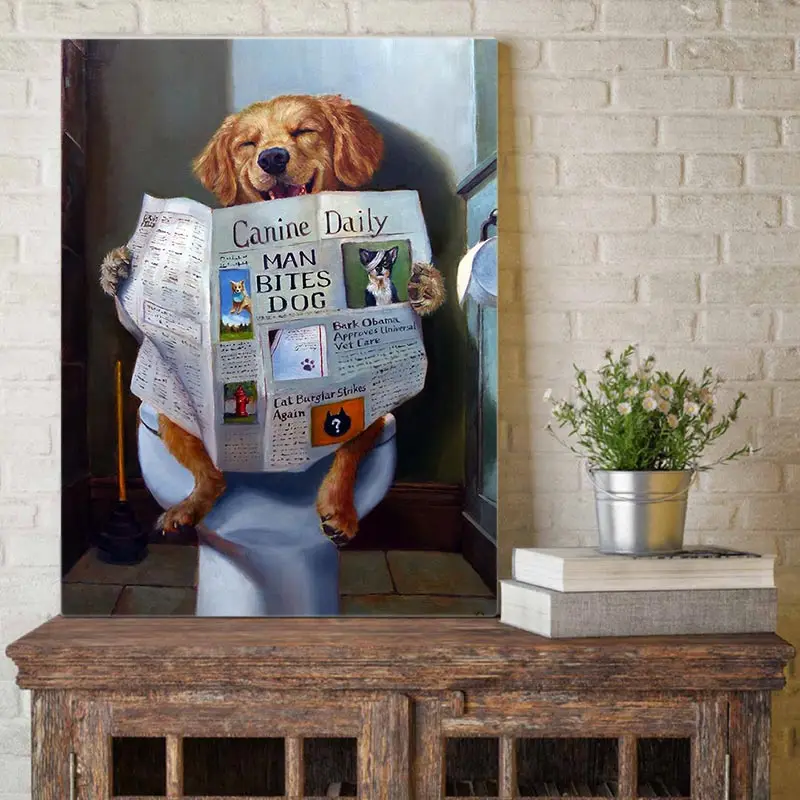 Алмазная вышивка унитаза с собакой 5D, сделай сам, полноразмерная картина с животными, вышивка крестиком стразы, мозаика, декор для ванной комнаты