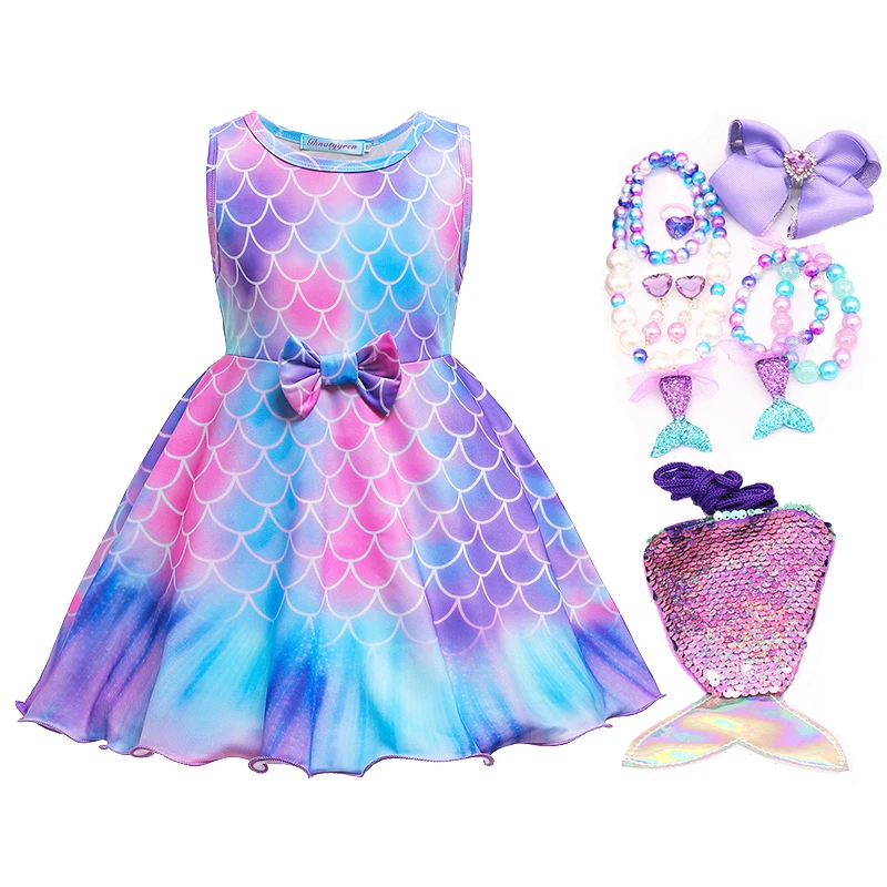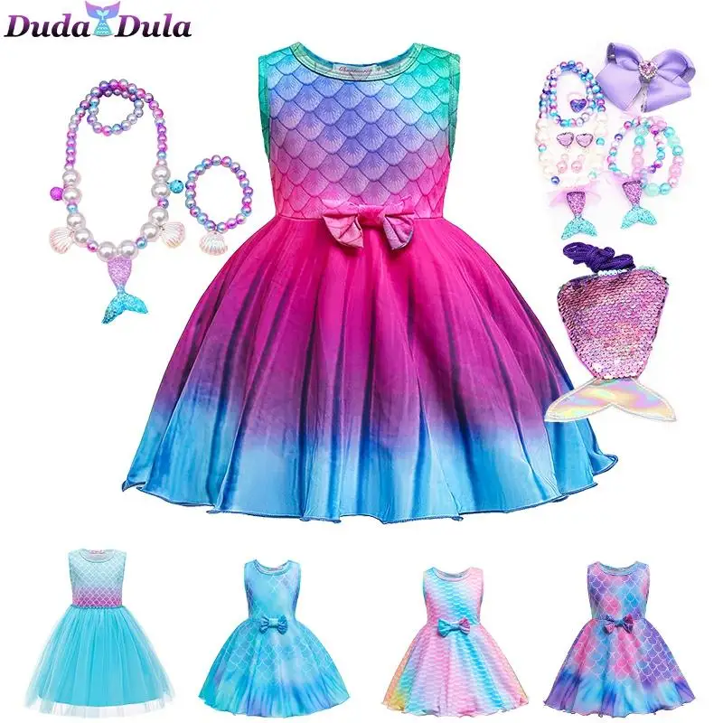 Новинка 2021, платье Русалочки для маленьких девочек, платье маленькой Русалочки Ариэль для девочек, костюмы для косплея, комплекты для детей, детская одежда