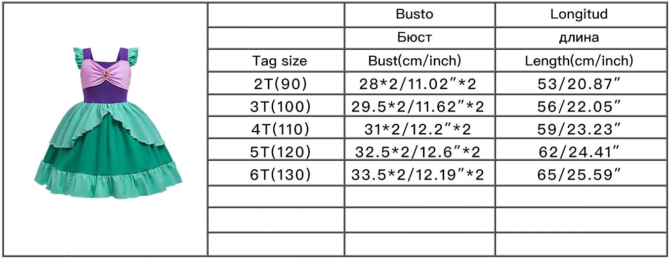 Very beautiful costume, my daughter is very happy with it. Take one size bigger.