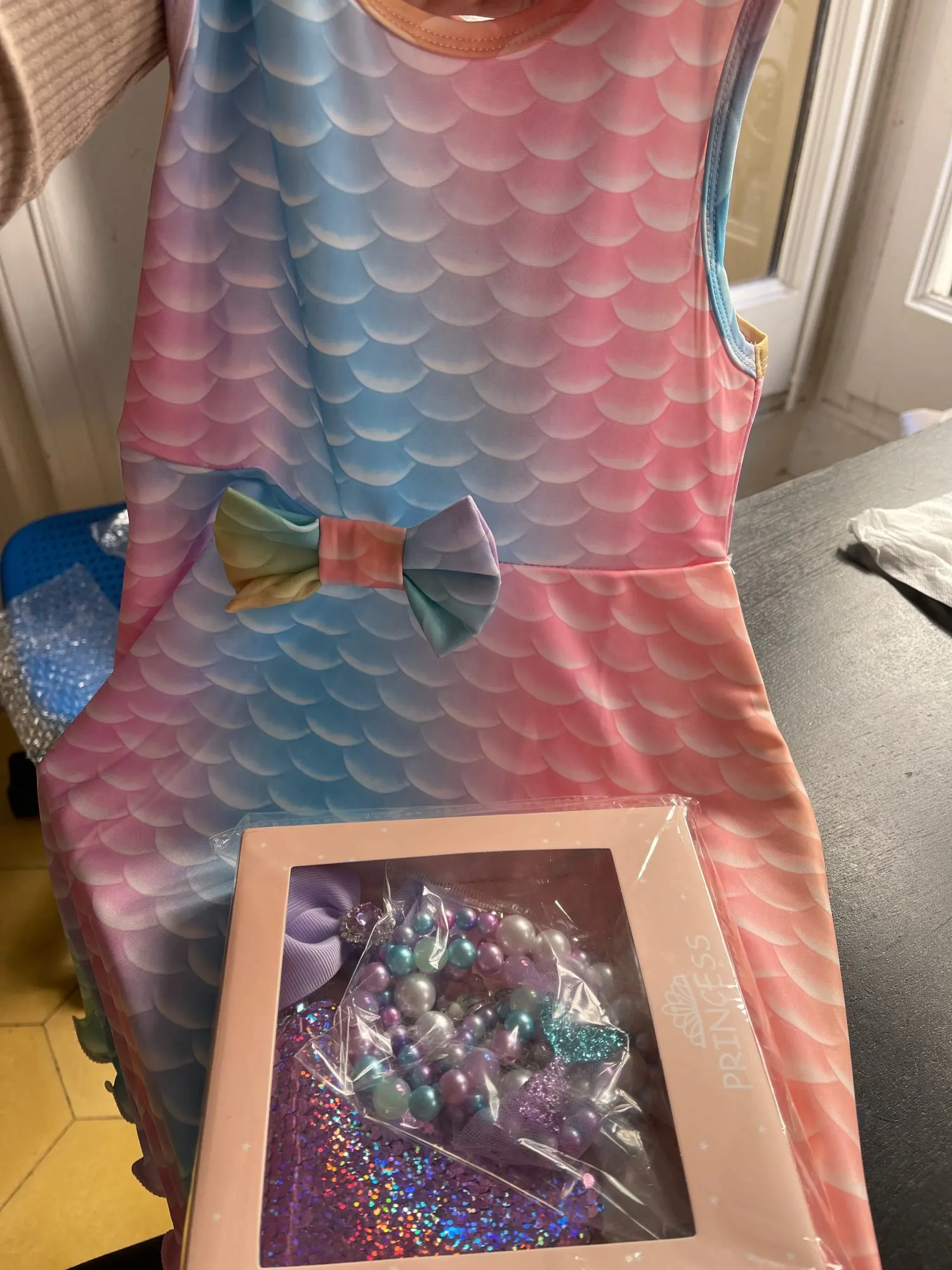 Оптимальный продукт! Любимый, оптимальное предложение моей дочери будет сияющим! Превосходное качество, оба платья в качестве аксессуаров, красивый жемчуг и символ ракушки и хвост русалки, хороший материал! Любимый! Прибыло в течение 5 дней! Перед расчетной доставкой!