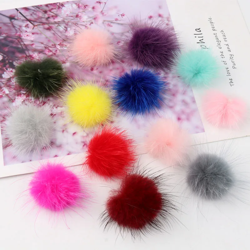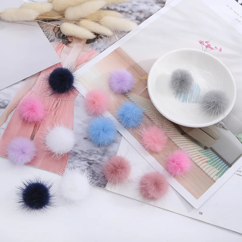 Помпон из мягкого меха норки, 3 см, для женщин и детей, зимние шапки, шапки, кольца, аксессуары для ключей, помпон для волос, 10 шт.
