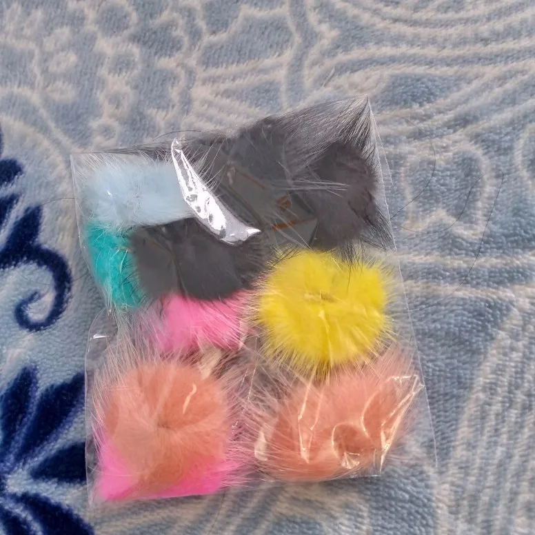 маленькие, забавные меховые шарики. немного слежались, пока ехали, но быстро распушились)))) цвет соответствует фото, качеством довольна. продавцу спасибо)