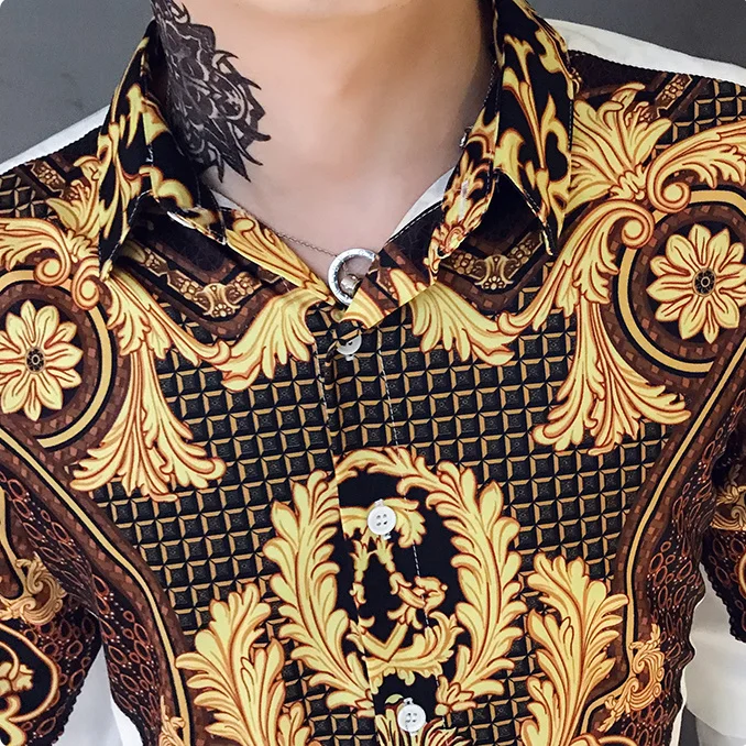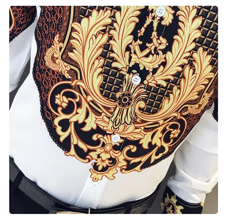 Повседневная Блузка мужская барокко Банкетная рубашка Пейсли черная Золотая Мужская рубашка роскошные корейские мужские рубашки с длинным рукавом и принтом Мужские приталенные