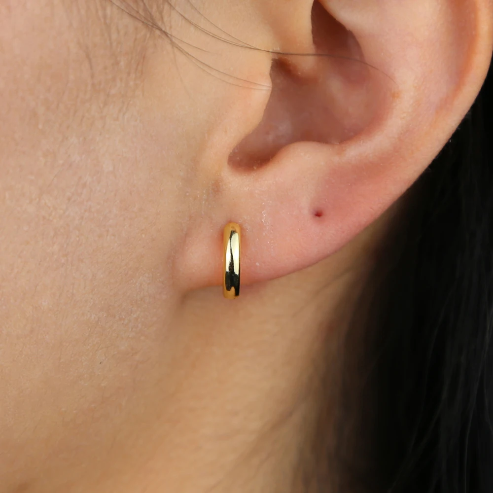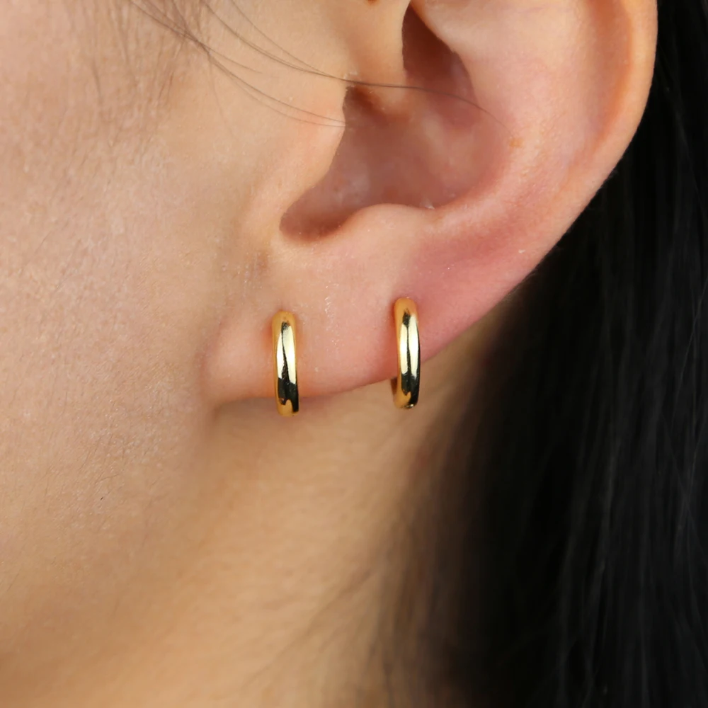 Женские круглые серьги-обручи huggie с золотым наполнением из стерлингового серебра 925 пробы, Изящные Простые ювелирные изделия