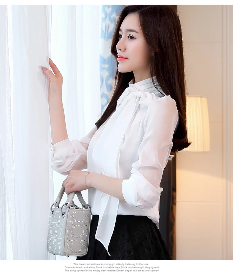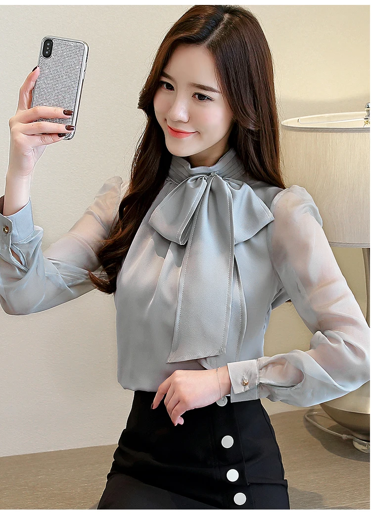 2021 Autmun рубашка с длинным рукавом Женская мода Женские топы и блузки, однотонная, с бантом, с воротником-стойкой и офисные блузки женские блузки размера плюс