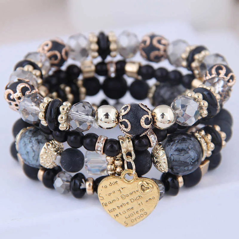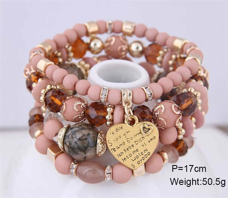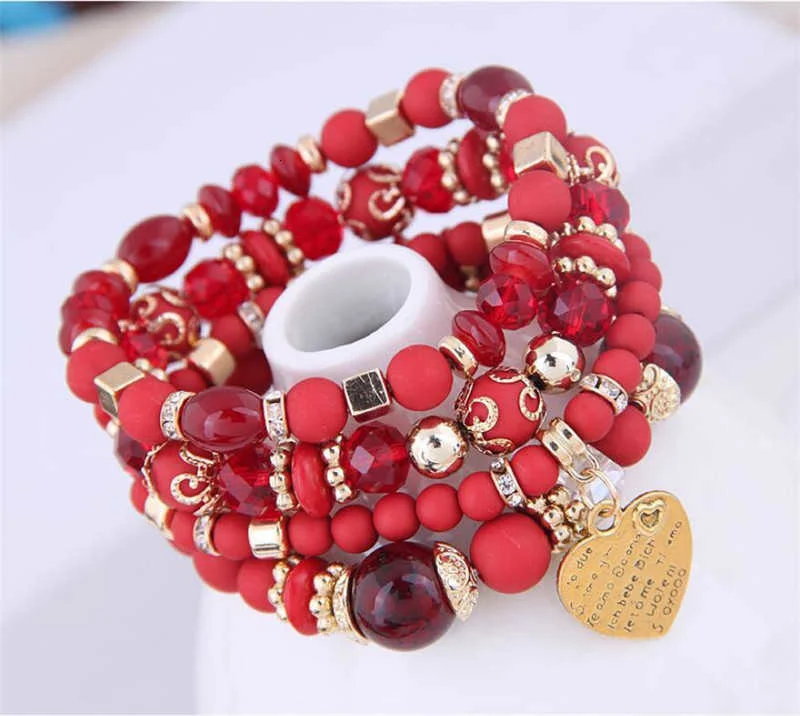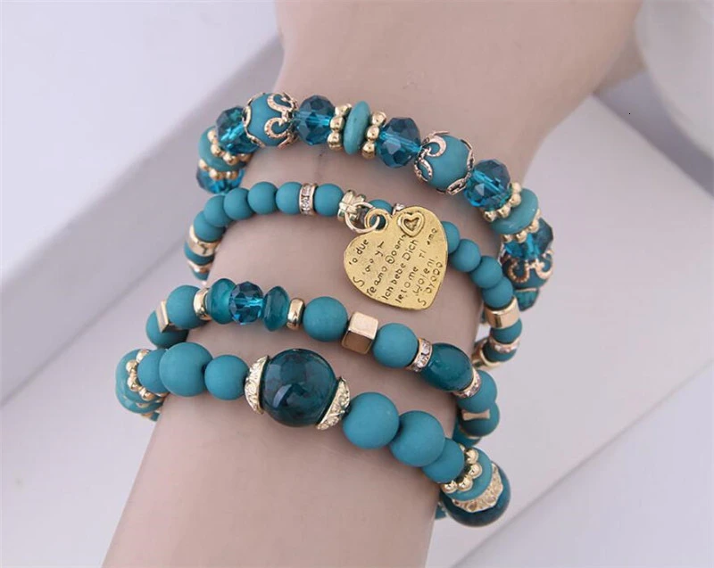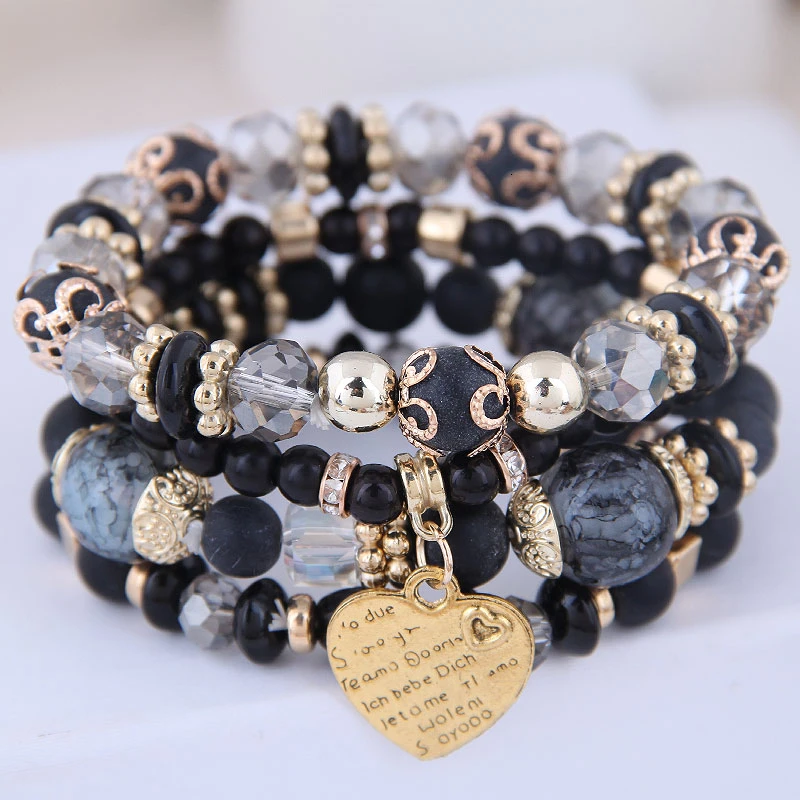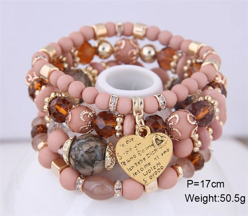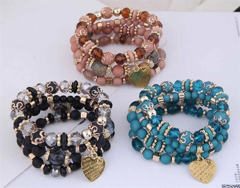 Новые богемные браслеты и браслеты для женщин, трендовые металлические Акриловые Бусины, кулон в виде сердца, многослойные браслеты, модные аксессуары для девочек