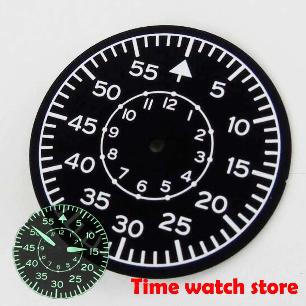 Зеленый светящийся циферблат 35,5 мм черного цвета для часов Miyota 8215 821A 8205 Mingzhu 2813 Sea-Gull 1612
