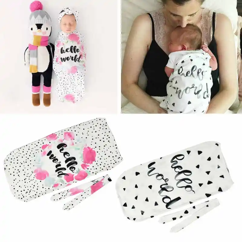 Младенческая новорожденная пеленка для младенцев Одеяло детский спальный мешок повязка на голову Hello World