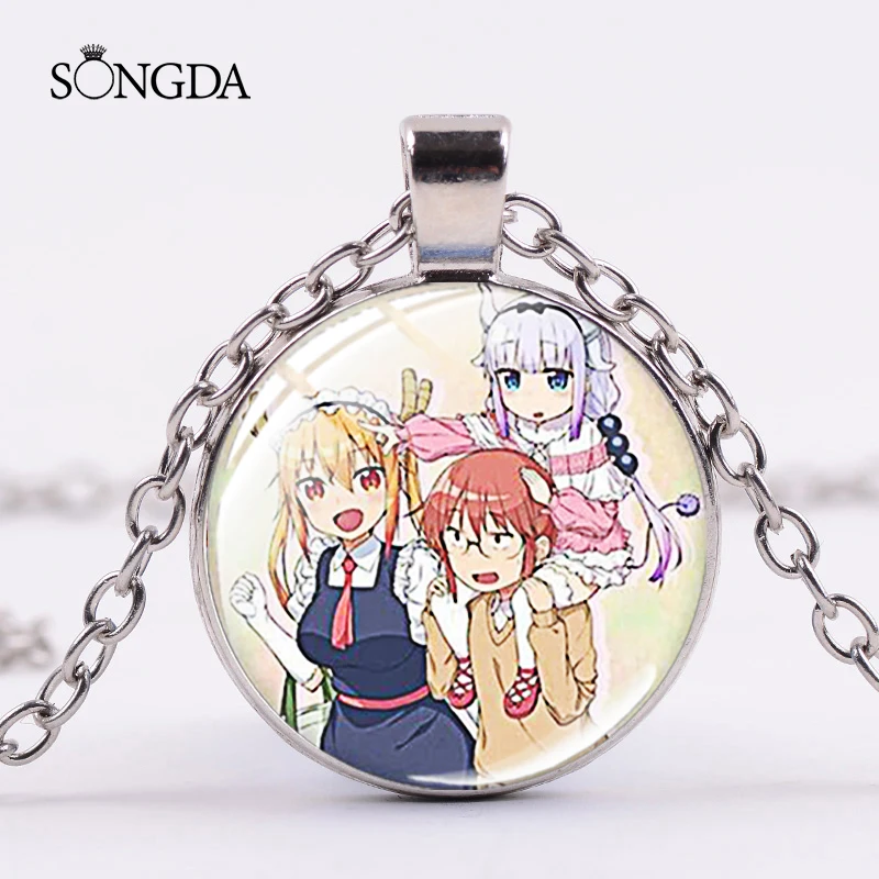 Ожерелье с подвеской Miss Kobayashi's Dragon Maid Kawaii Kanna Kamui Tohru из стекла кабошон с фото ожерелье Аниме сувенирные подарки