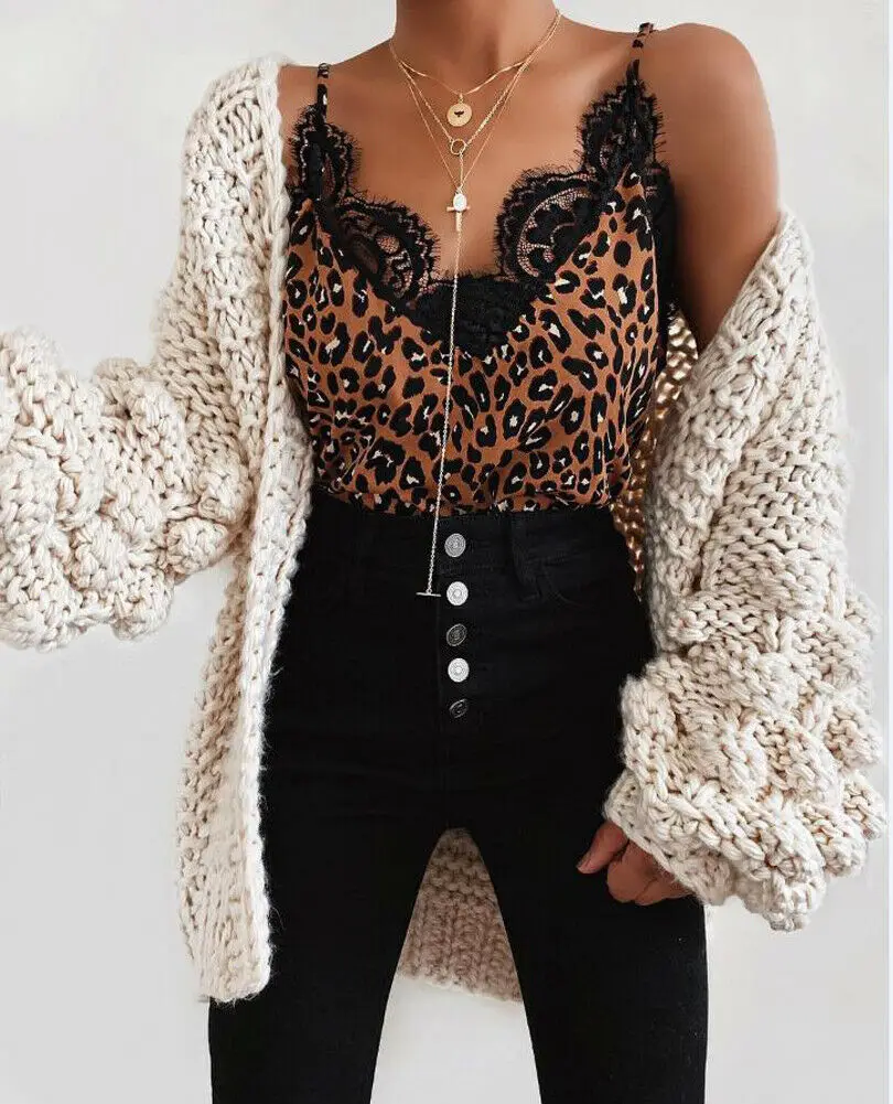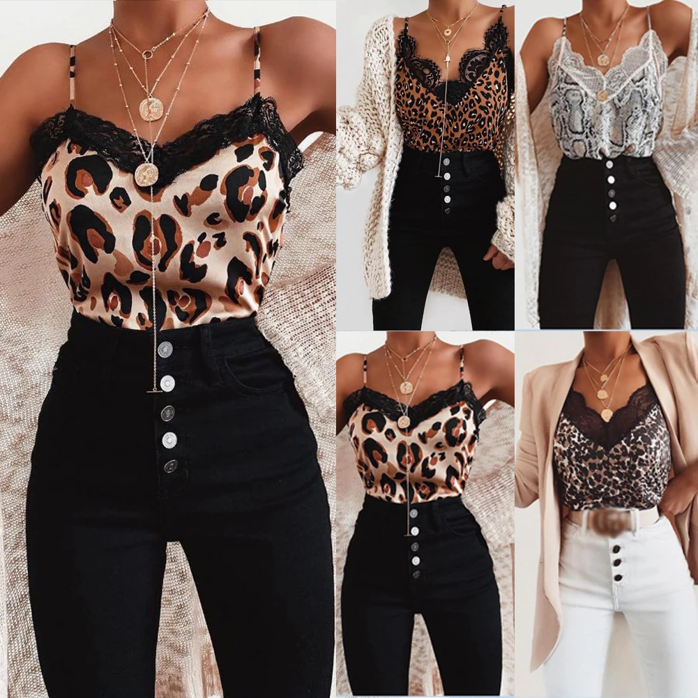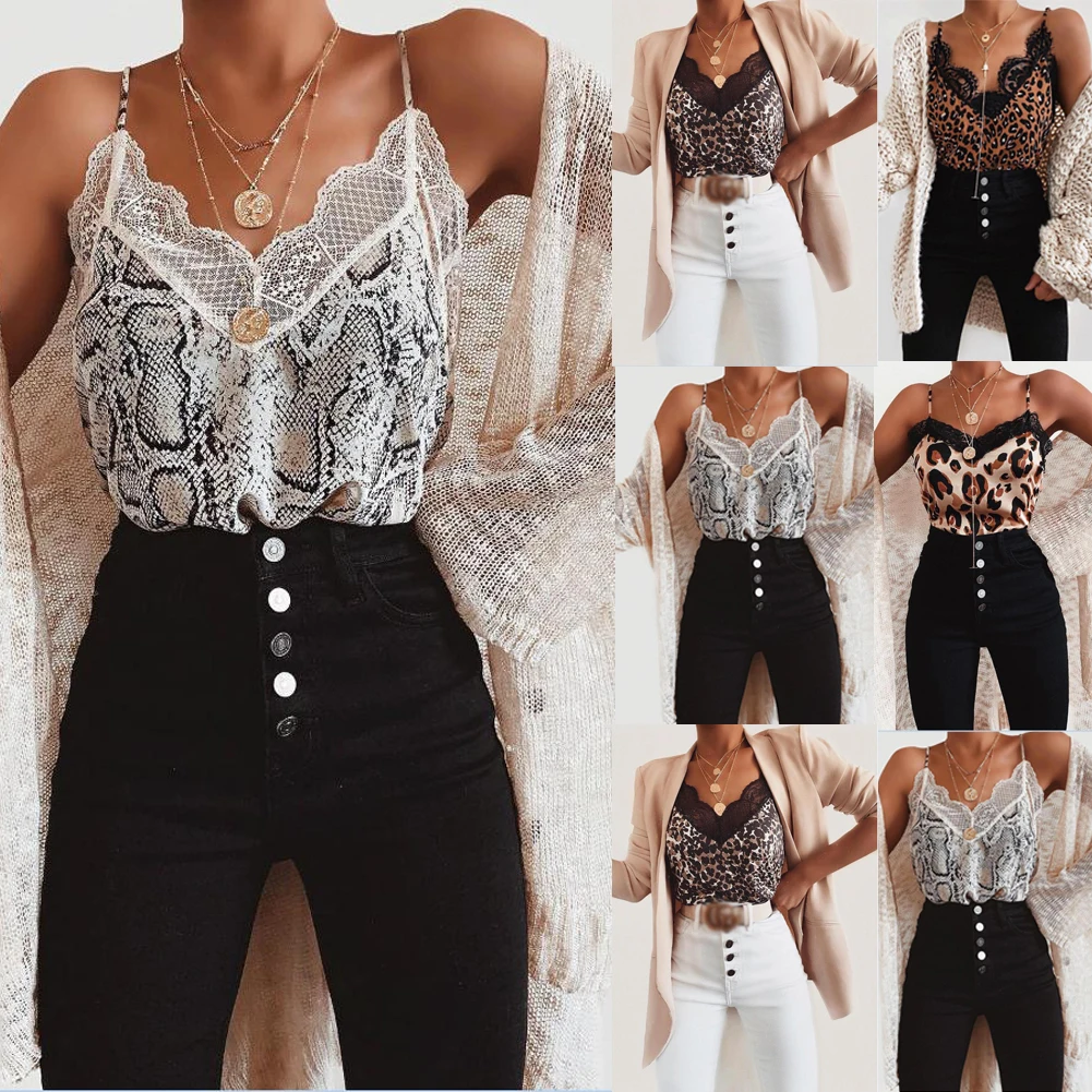 Майка женская кружевная с леопардовым принтом, жилетка без рукавов для девушек Топ, Свободный Топ с V-образным вырезом, футболка, одежда