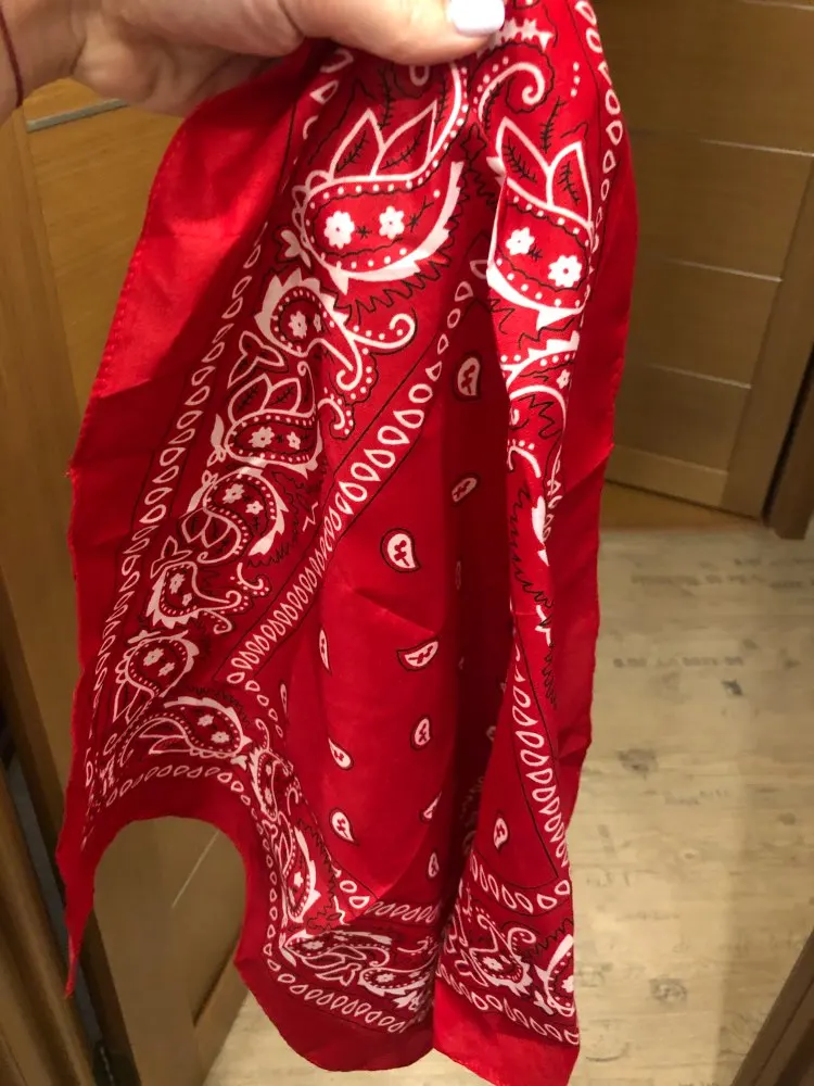 Платок похож на тот, который на превью. На идеальное качество ткани можно даже не надеяться за такую цену, но материал в принципе хороший. Из него получаются приколдесные повязки.