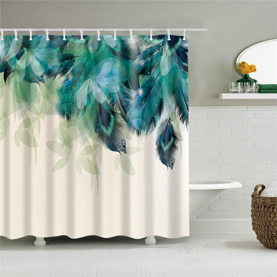 Занавеска с узором в виде перьев для ванной комнаты, занавеска для ...