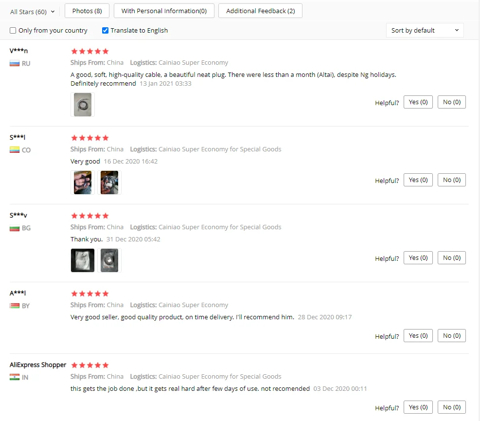 Страна: RU Ships From: CN Доставка: Cainiao Super Economy 09.07.2021