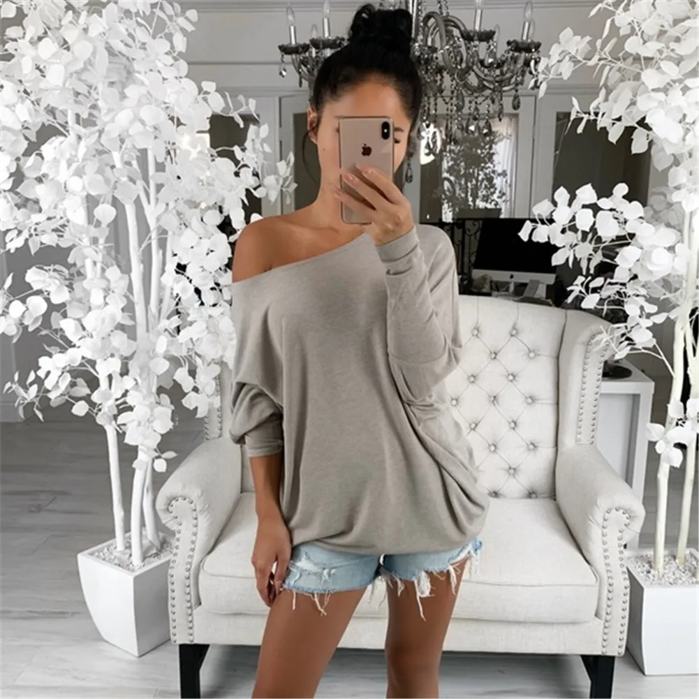 Топ с открытыми плечами, женская одежда, женская Свободная блузка, модная женская рубашка с длинным рукавом, топы оверсайз