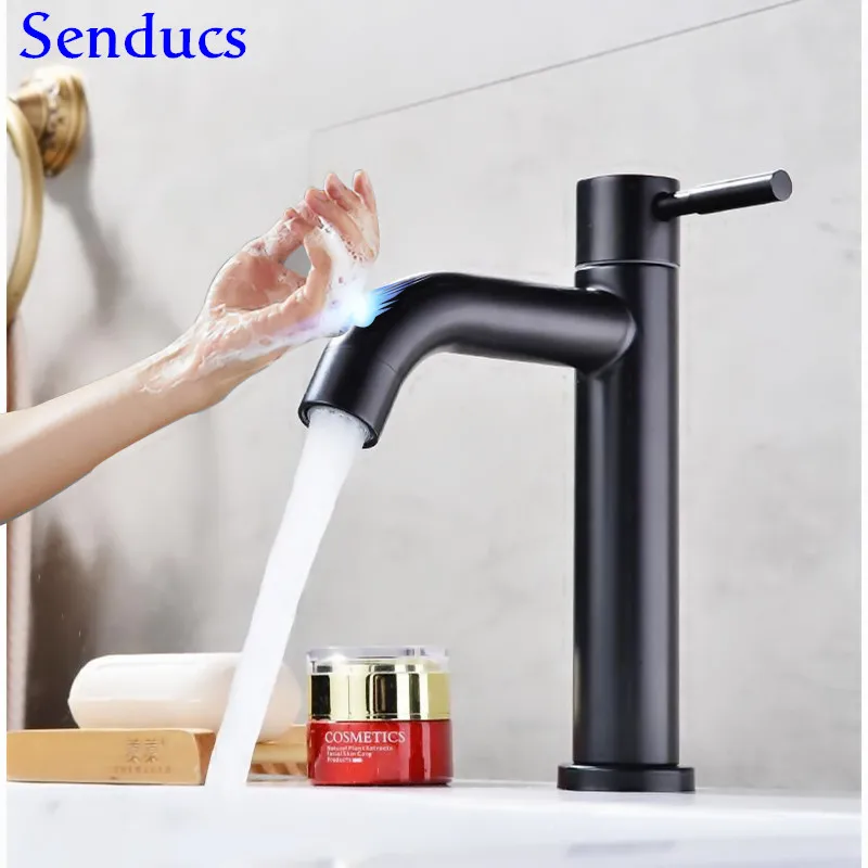 Смеситель для умывальника senфитнес, Черный сенсорный кран из нержавеющей стали 304