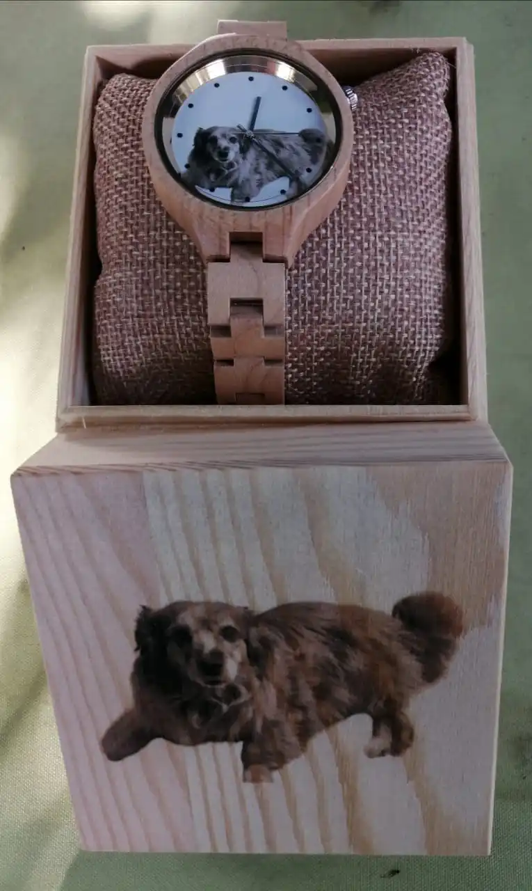 Shipping was fast. Изображение хорошего качества. Они сделали все возможное, чтобы сохранить характеристики фотографии, которая не имела четко определенного контура. Следующий текст в соответствии с просьбой. Он поставляется с устройством для регулировки браслета, который довольно длинный. Презентация в коробке красивая. Человек был в восторге от подарка.