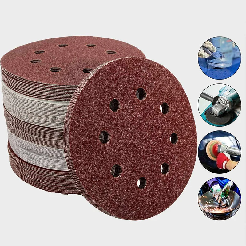 100 шт 5 "круглые 8 отверстий шлифовальные диски Полировочная бумага, Полировочная бумага, шлифовальная машинка рулон из песчаной бумаги бумажные рулонные диски инструменты