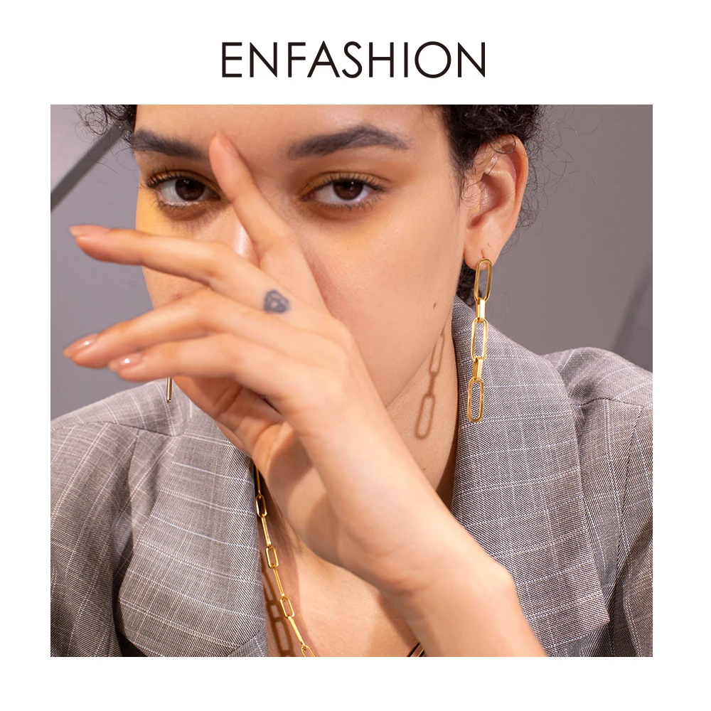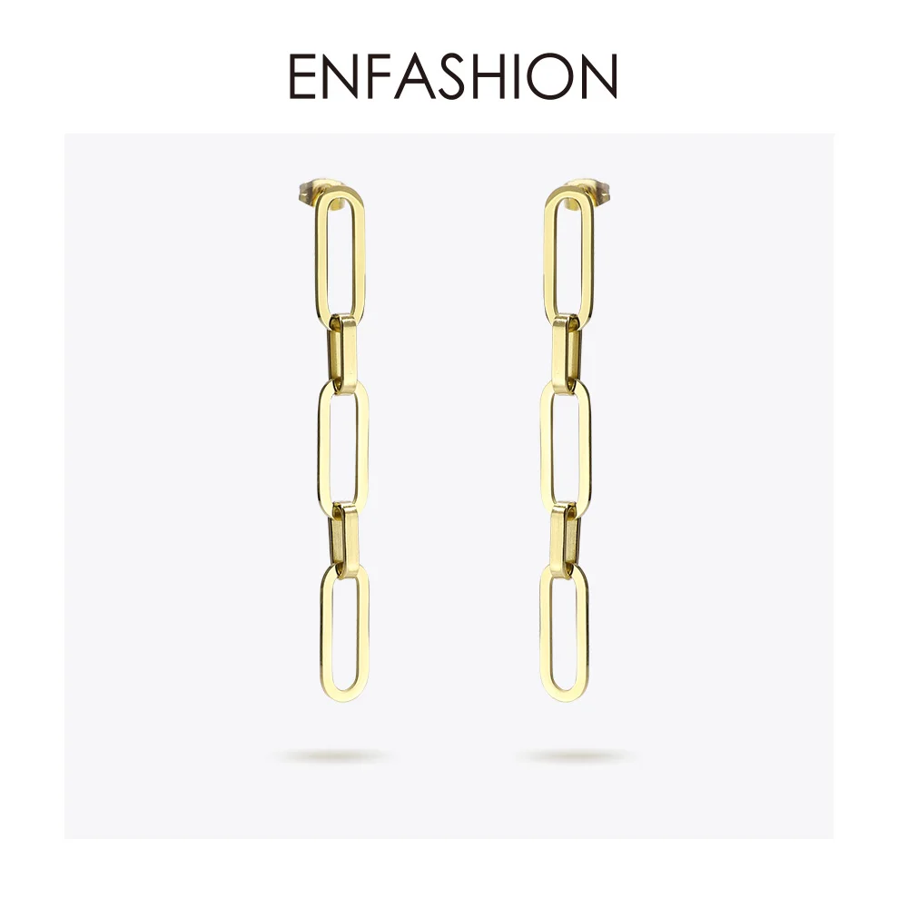 Женские длинные висячие серьги ENFASHION, простые висячие серьги золотого цвета в стиле панк с цепочкой, ювелирные украшения, E1119