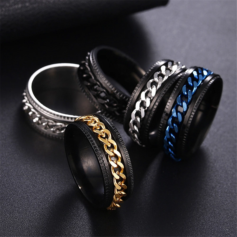 Кольца мужские из нержавеющей стали, вращающиеся звенья с кольцом-с...