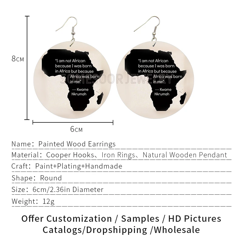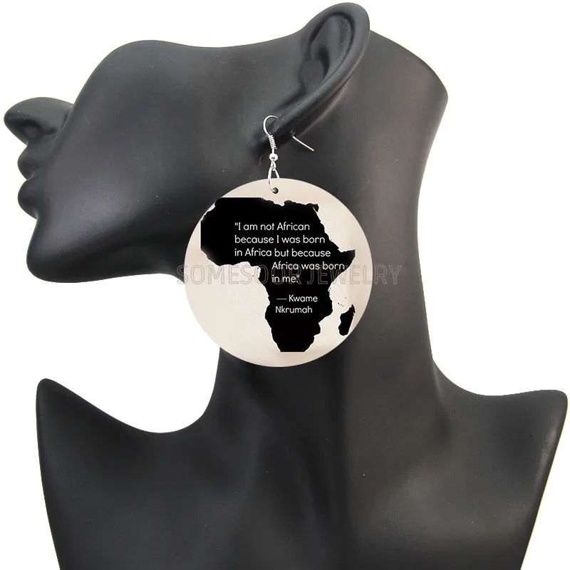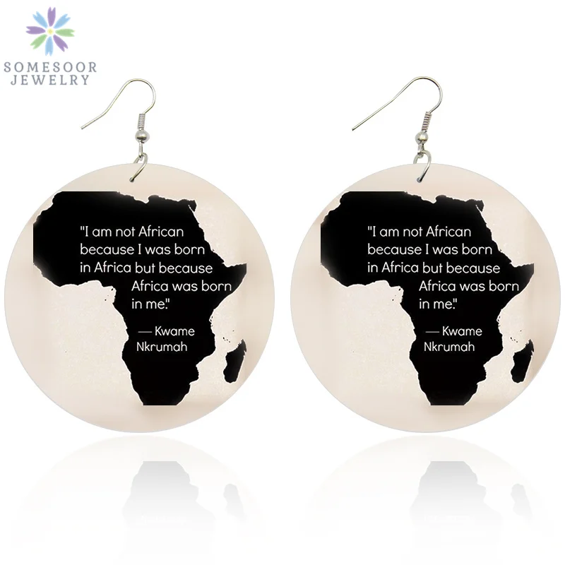 SOMESOOR, Африканский Рожденный в мне, черные высказки, деревянные висячие серьги, дизайн Африканской карты, деревянные висячие украшения с принтом для женщин, подарки