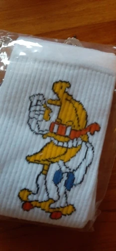Носки шли достаточно долго. Качество отличное, сидят плотненько, принт растягивается, чуть-чуть побольше бы размер, а так нормас.