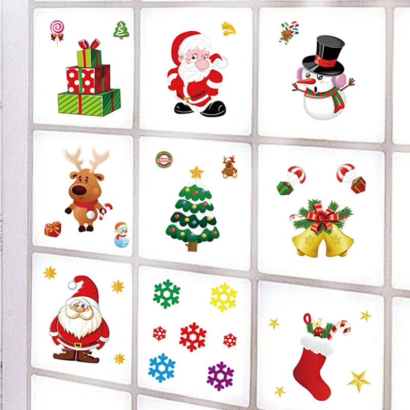 Новогодние наклейки на окно рождественские украшения окна цепляются DIY мультфильм стикер дети рождественский подарок DEC889