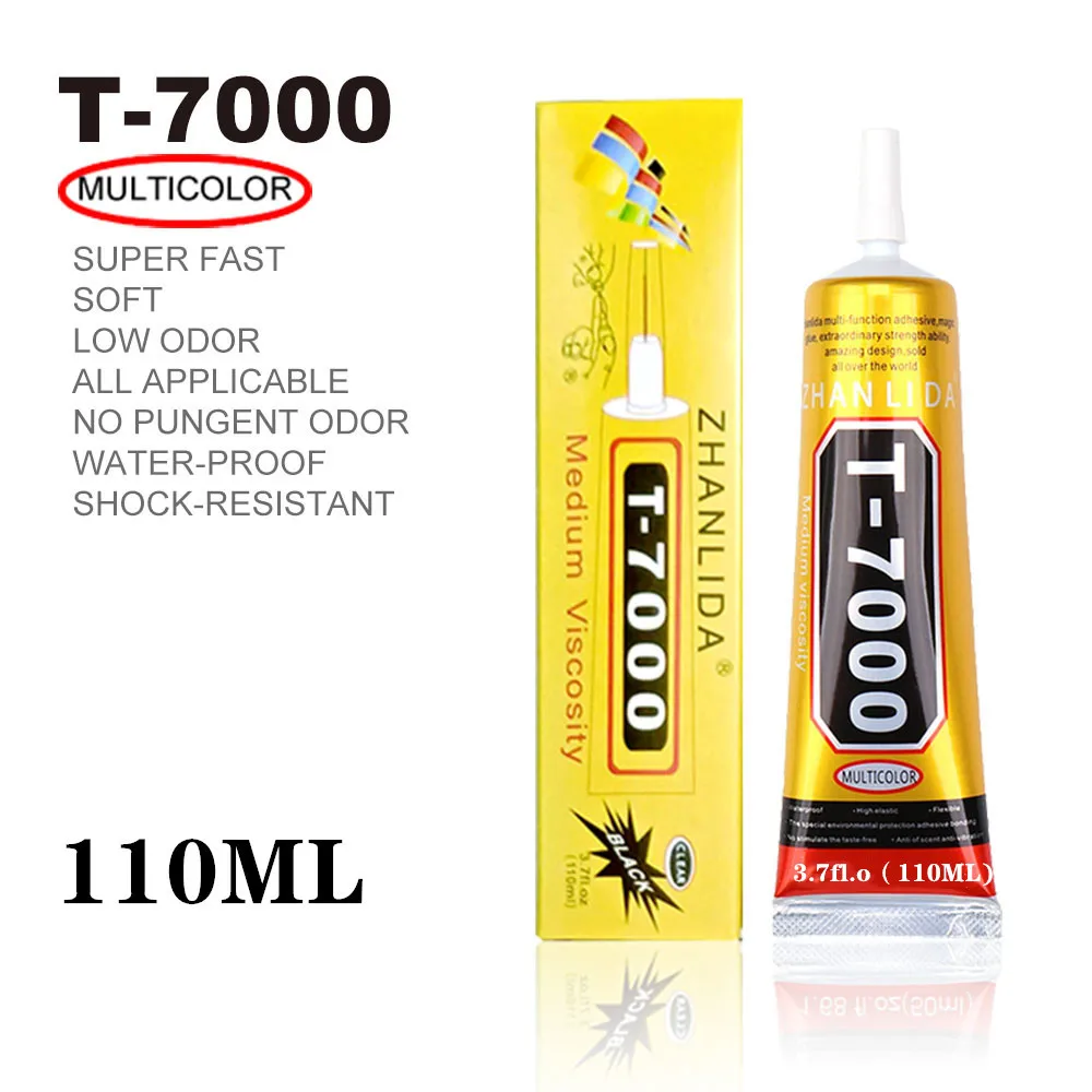 El adhesivo nivelador T7000 es un juguete, diamantes de imitación, decoración variada, flores, Iluminación, joyas, Marco LCD, accesorios para tefonos móviles и т. Д. artesanias de cristal, pegatinas pintadas a mano, diamantes, auriculares, auriculares, accesorios и т. д., se pueden unir a productos especiales y otros artólos dificiles. El T7000 tiene un Color picante y una fragancia clara; es un pegamento de solución transparente nuevo de un componente. Se puede curar a temperatura ambiente, fаcil de usar sin volver a embalar. La cubierta se puede utilizar con alta elasticidad, Pelicula suave, anti-vibración y resistente al agua después del curado.