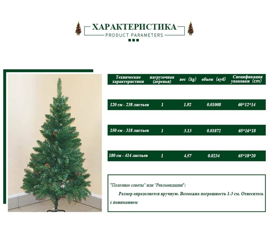новогодние ели елкиn 120150180 см Шифрование Зеленое дерево Искусственные ПВХ елочные украшения Сосновые шишки PeFamily Новогоднее украшение для дома Елки-Ель из ПВХ (со шишками)