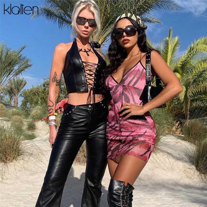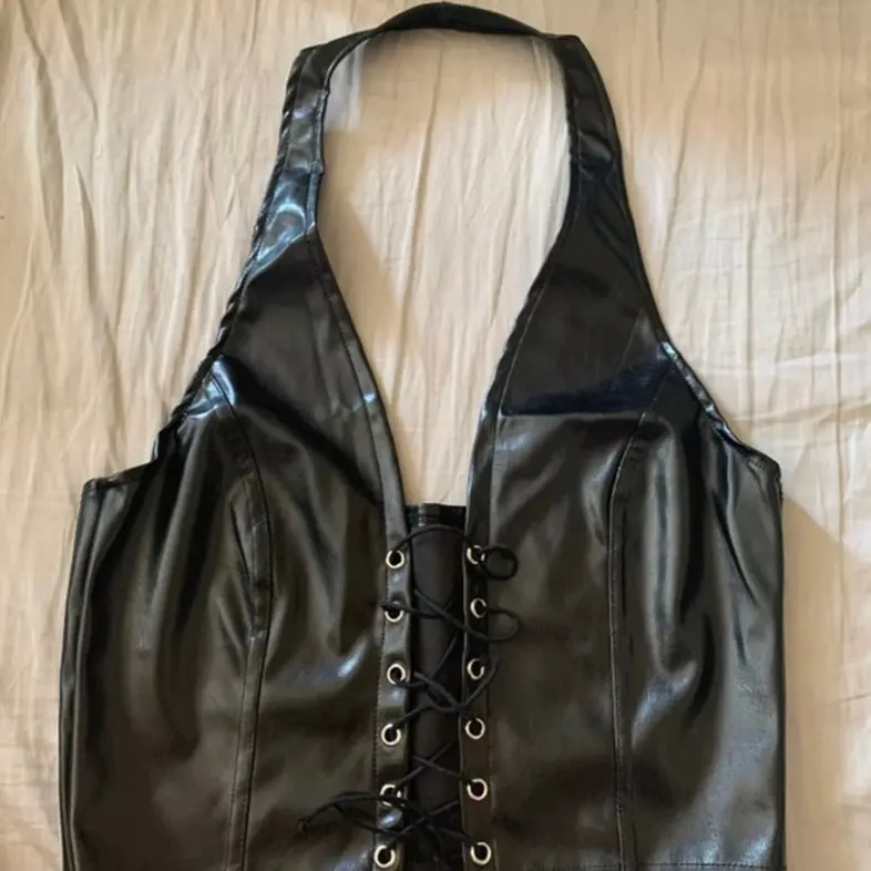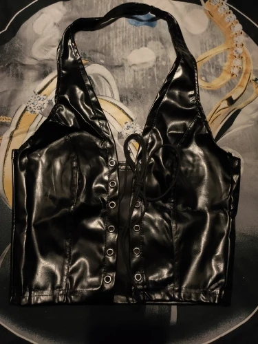 УКОРОЧЕННЫЙ ТОП KLALIEN из черной кожи, в стиле панк, Женский камзол, лето 2020