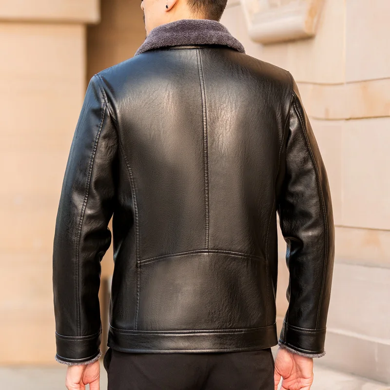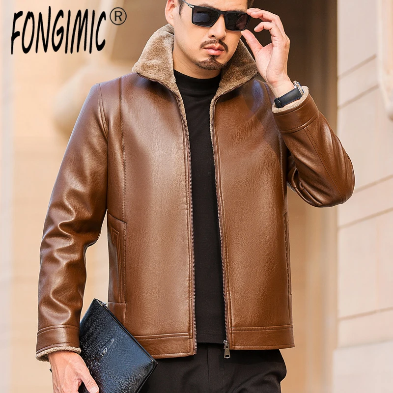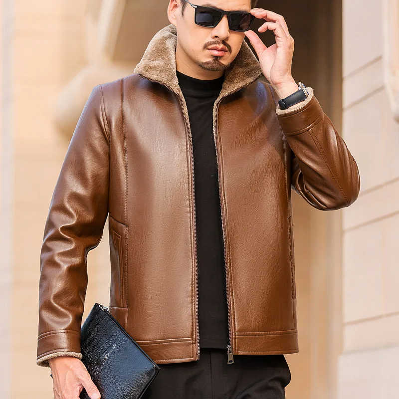 Меховые кожаные куртки для мужчин, теплая интегрированная кожаная одежда для пожилых людей, утепленная Свободная куртка с лацканами большого размера, локомотивная куртка, пальто