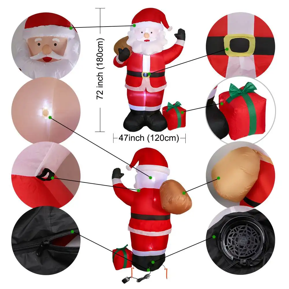 1. Стиль: самонадувается за секунды, легко сдувается и хранится2. Конструкция: прочный и водонепроницаемый нейлоновый материал. Но воздуходувка не является водонепроницаемой, не устанавливайте во время дождя.3. Идеально подходит для Рождественского украшения сада в помещении/на улице; Украшение для рождественского мероприятия, рождественского ночного мероприятия, рождественской вечеринки, школьных украшений и многого другого