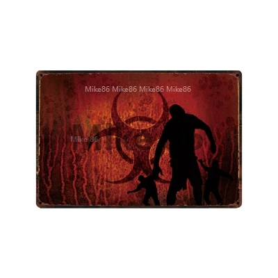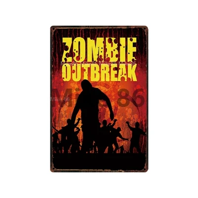 Mike86 осторожность, предупреждение о вспышке зомби, металлический знак, оловянный плакат, домашний декор, Настенная картина 20*30 см