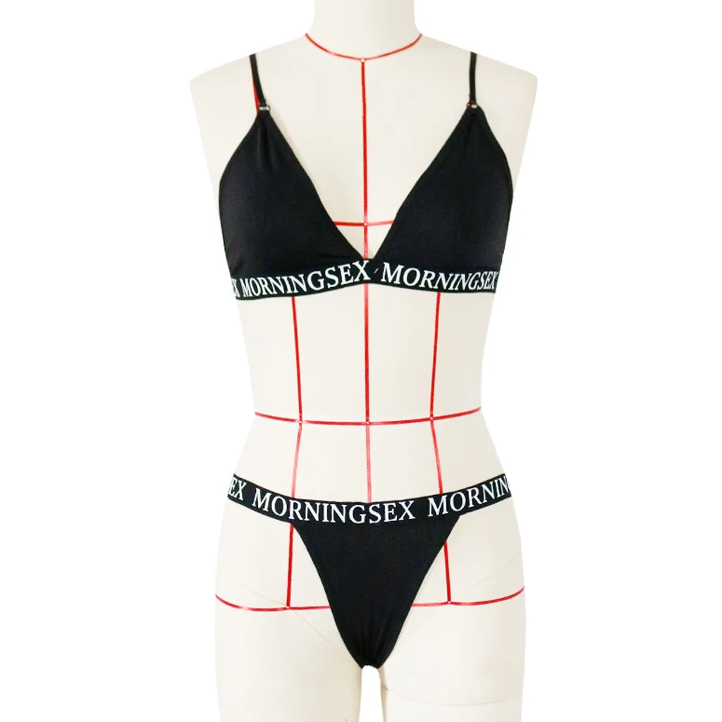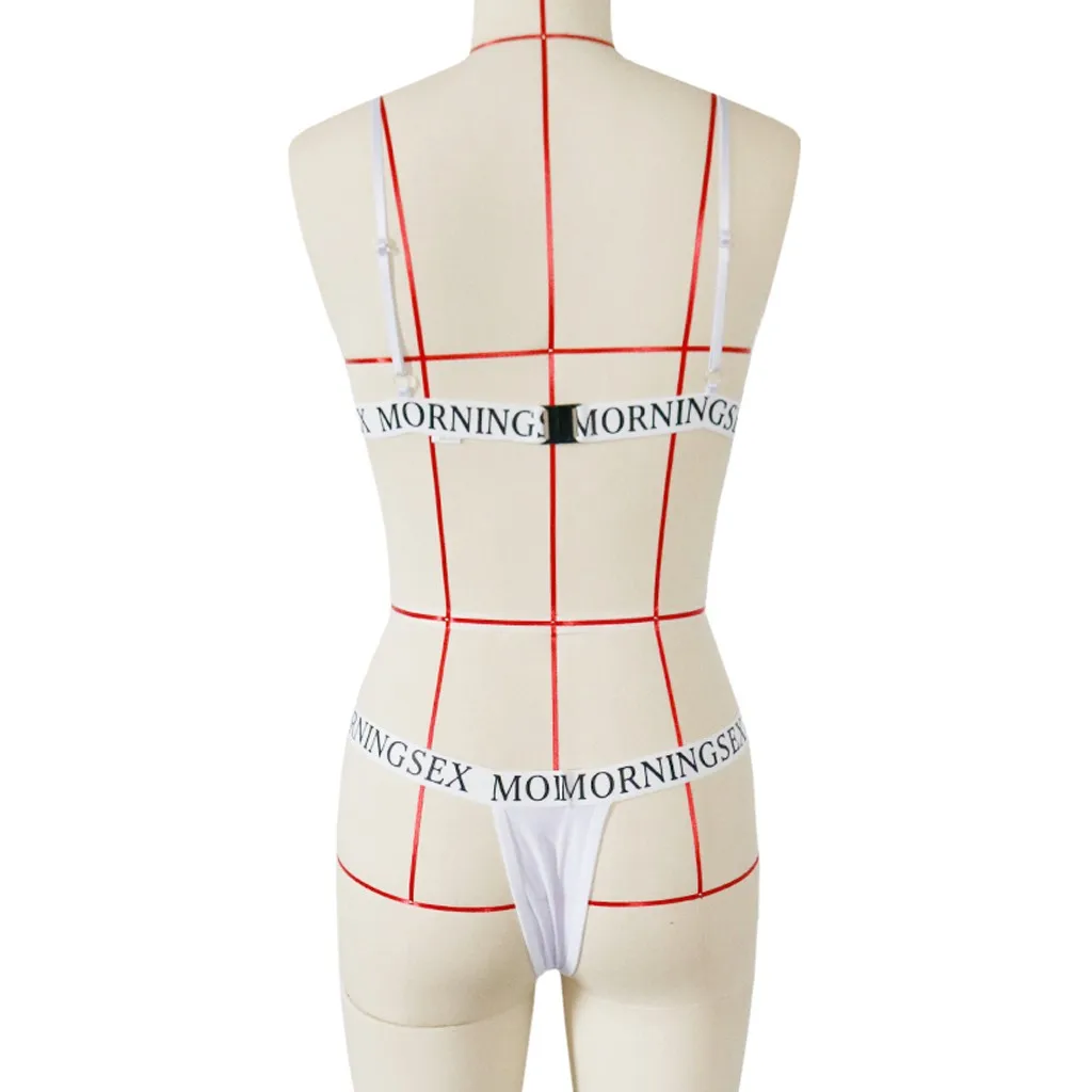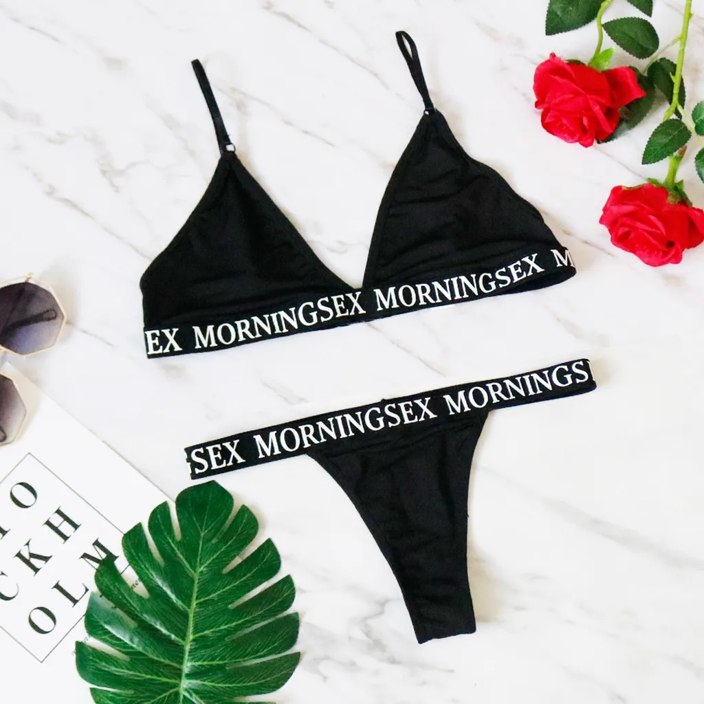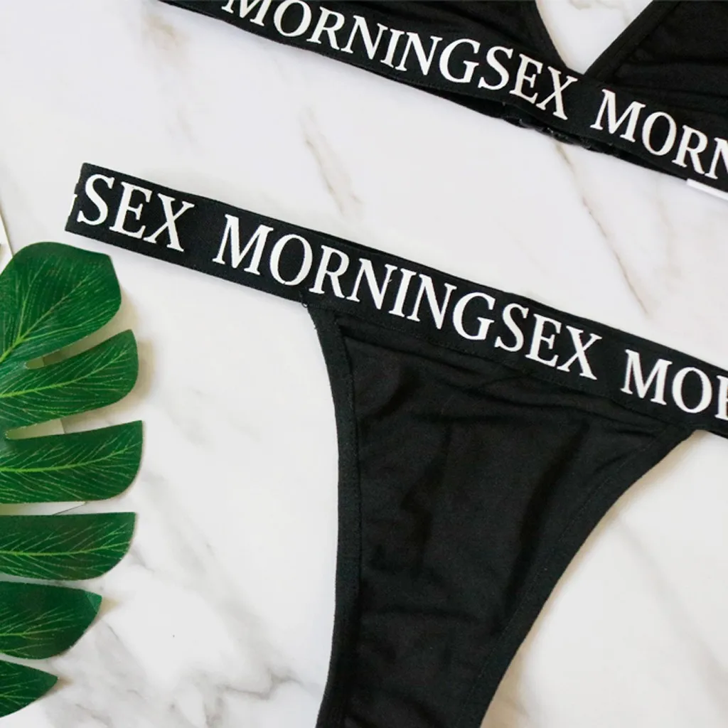 Женское нижнее белье, комплект с бюстгальтером с буквенным принтом, сексуальное нижнее белье, размера плюс
