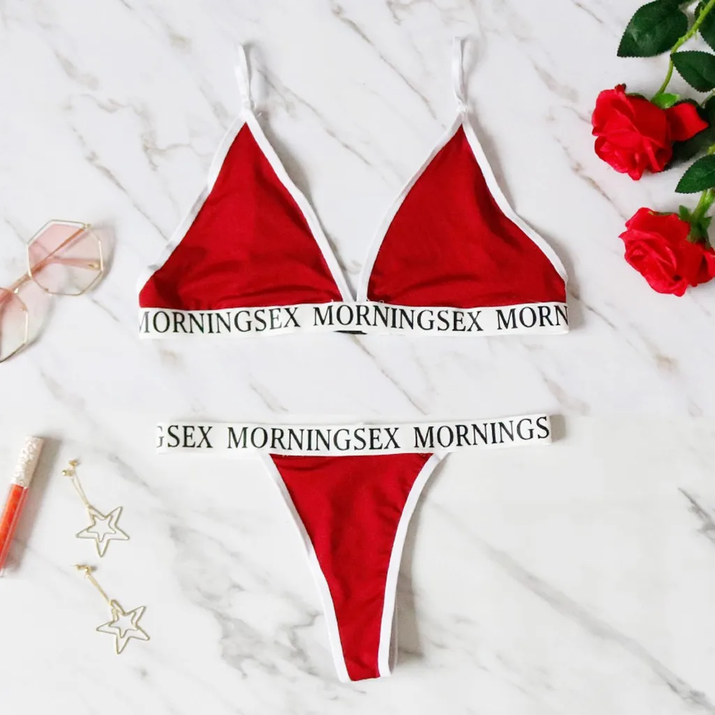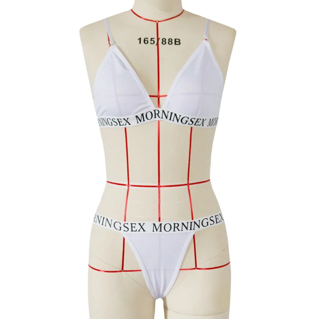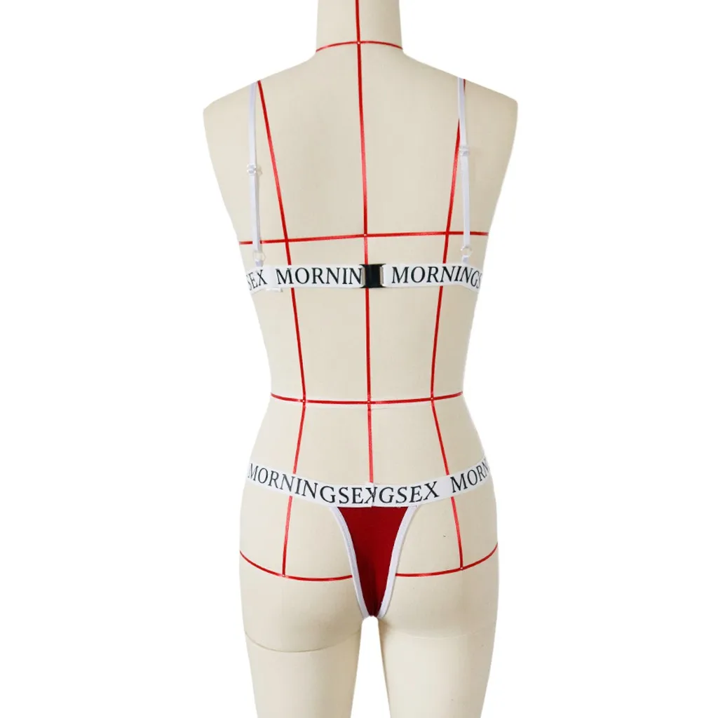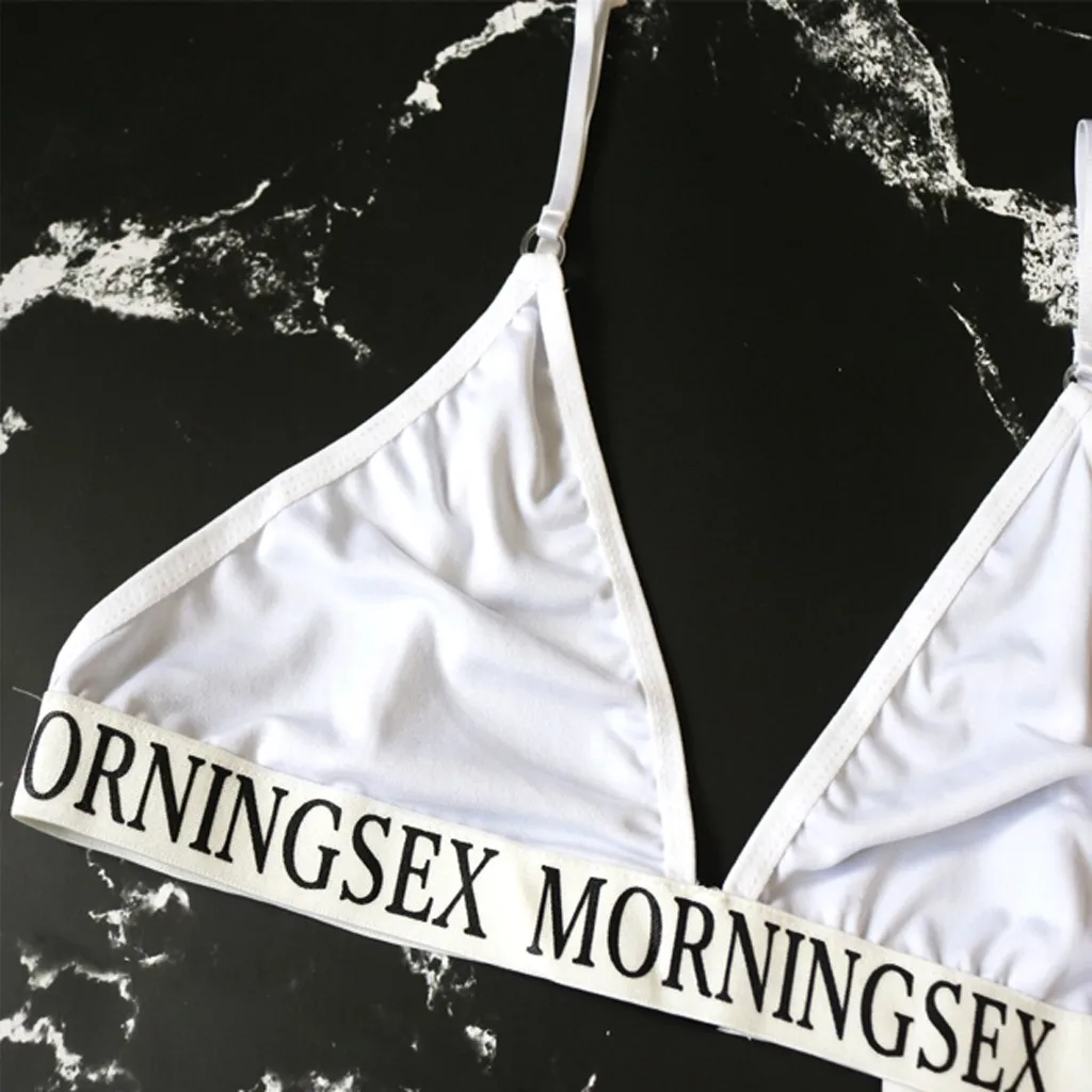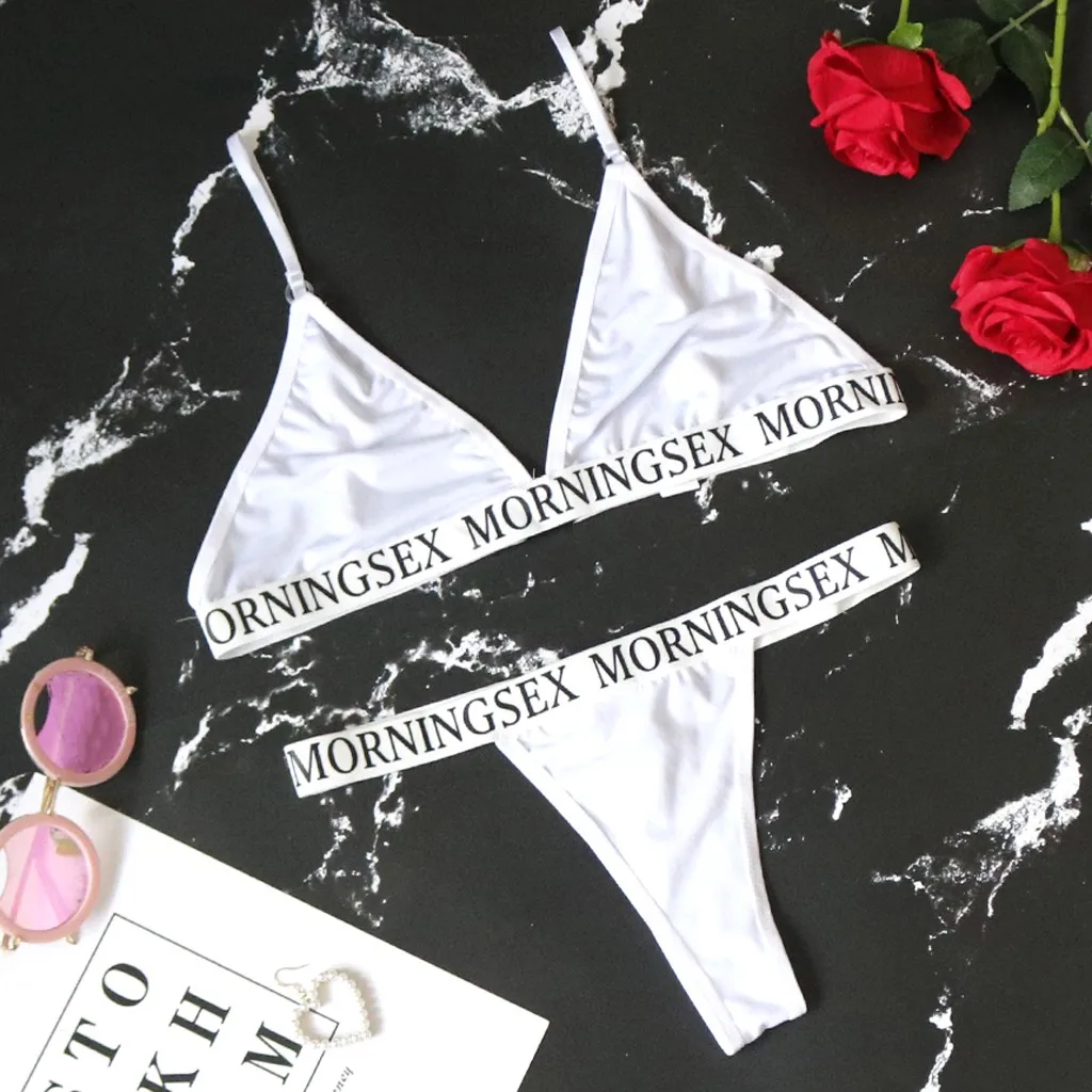 Женское нижнее белье, комплект с бюстгальтером с буквенным принтом, сексуальное нижнее белье, размера плюс