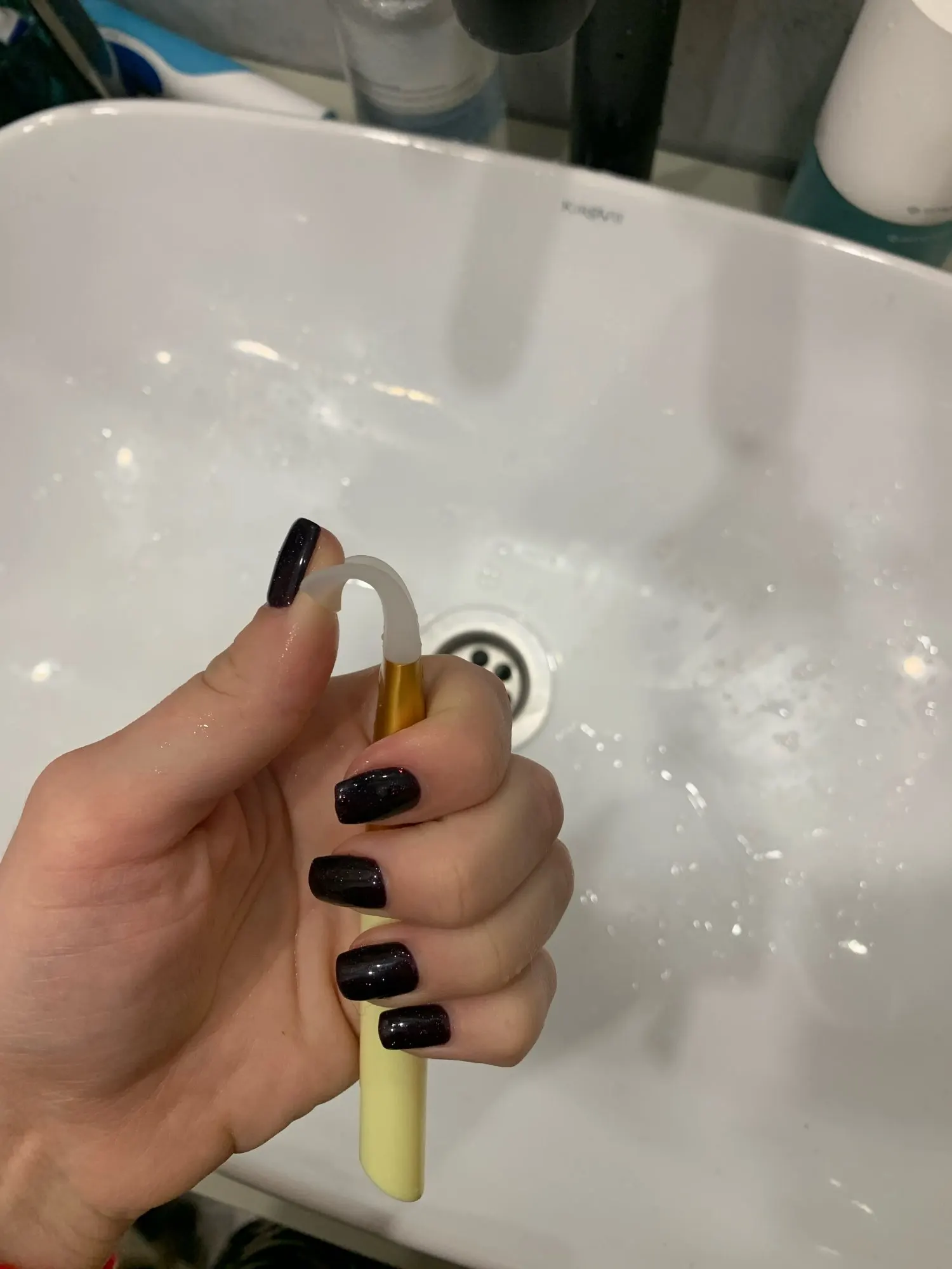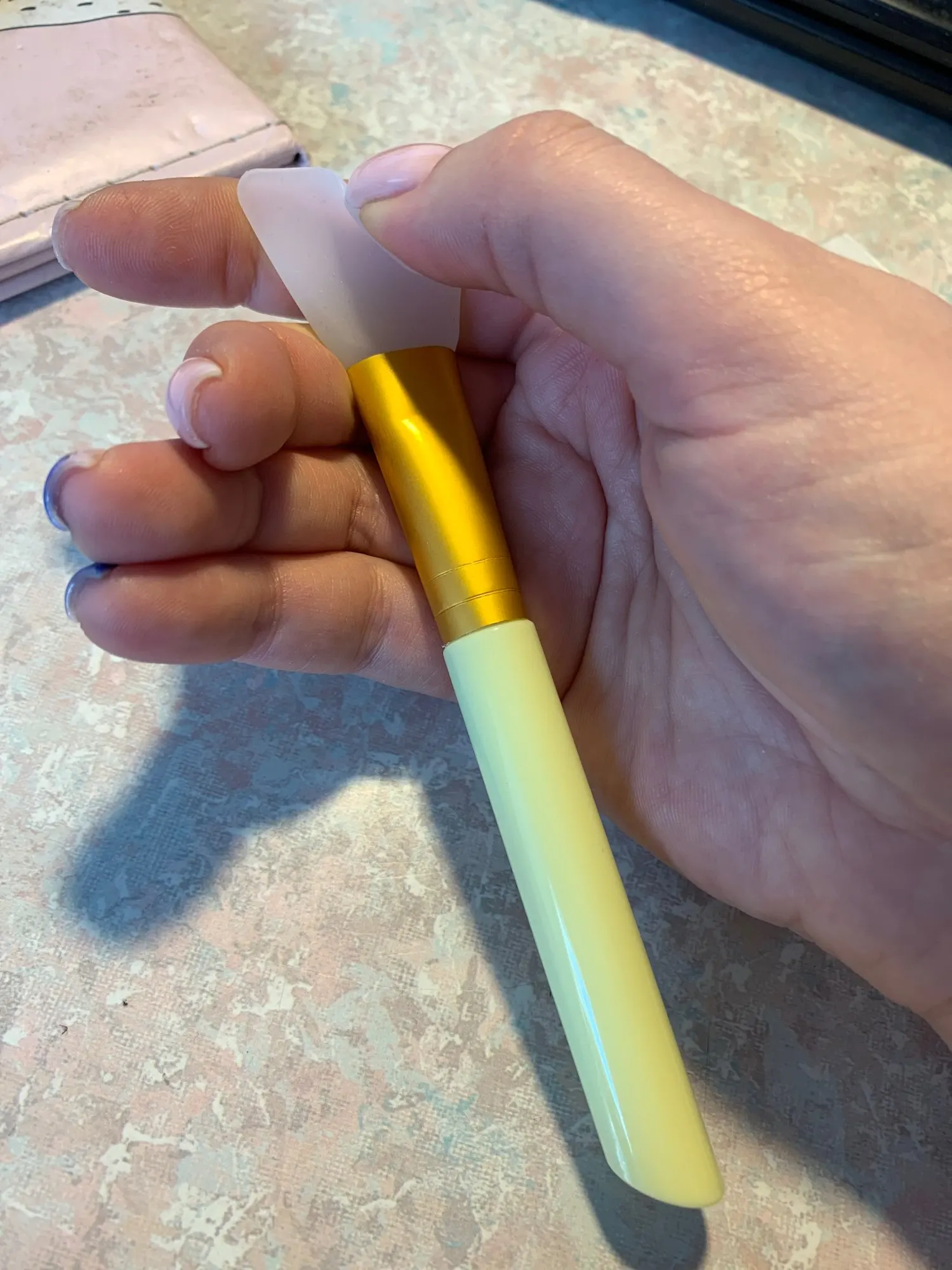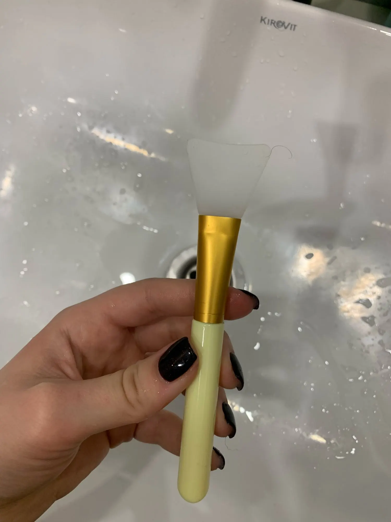 Заказала 15.12, пришла в Самарскую область 30.12, хорошо упакована, сама кисть в отдельном пакете, на вид , я думала, будет побольше, но в целом нигде никаких сколов, царапин или порезов на самой кисточке нет. Ещё не пробовала, но у подруги точно такая же, очень удобно!
