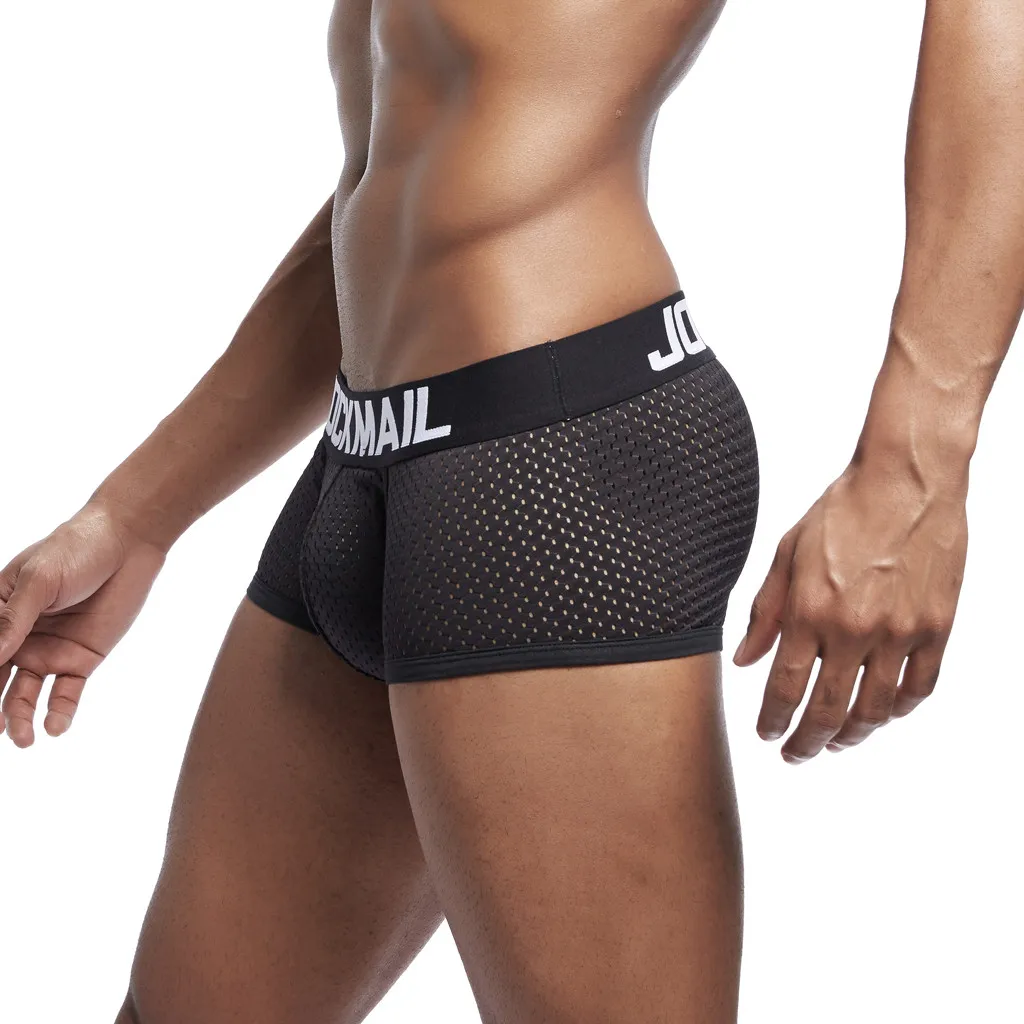 Мужские новые трусы из сетчатого дышащего лоскутного материала, Спортивное нижнее белье для фитнеса, трусыПримечание: Пожалуйста, сравните детали размеров с вашими перед покупкой! Используйте похожую одежду для сравнения размера.