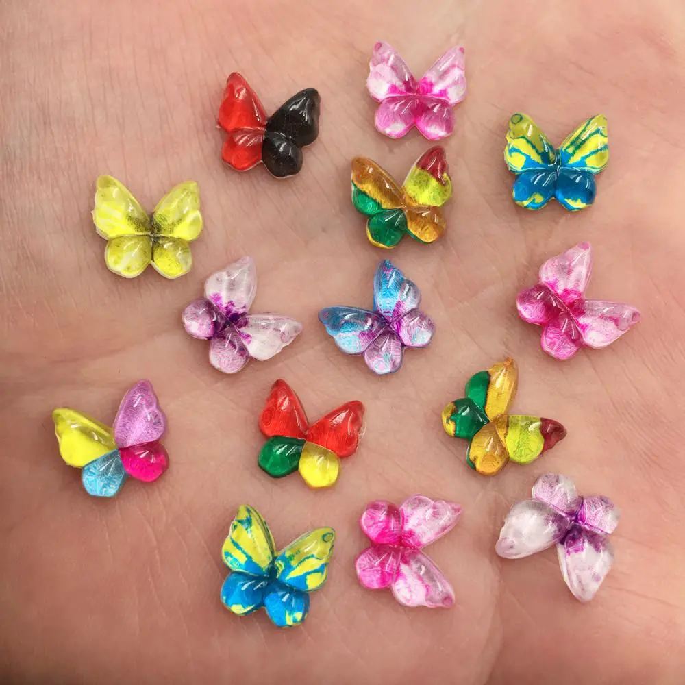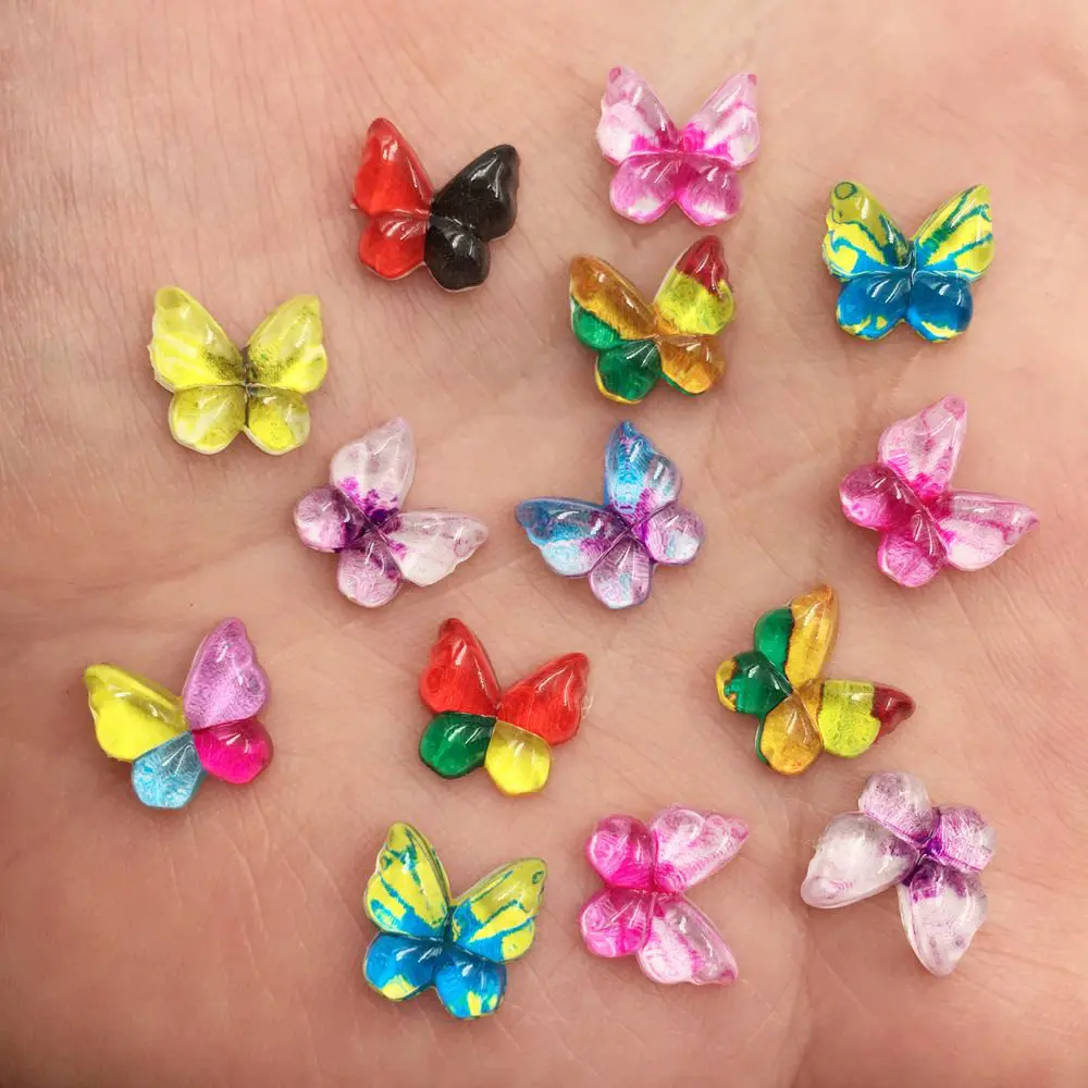 Оптовая продажа, 400 шт., разноцветные стразы из смолы 10 мм с бабочкой и плоским основанием, Аппликации сделай сам для свадьбы, скрапбукинга