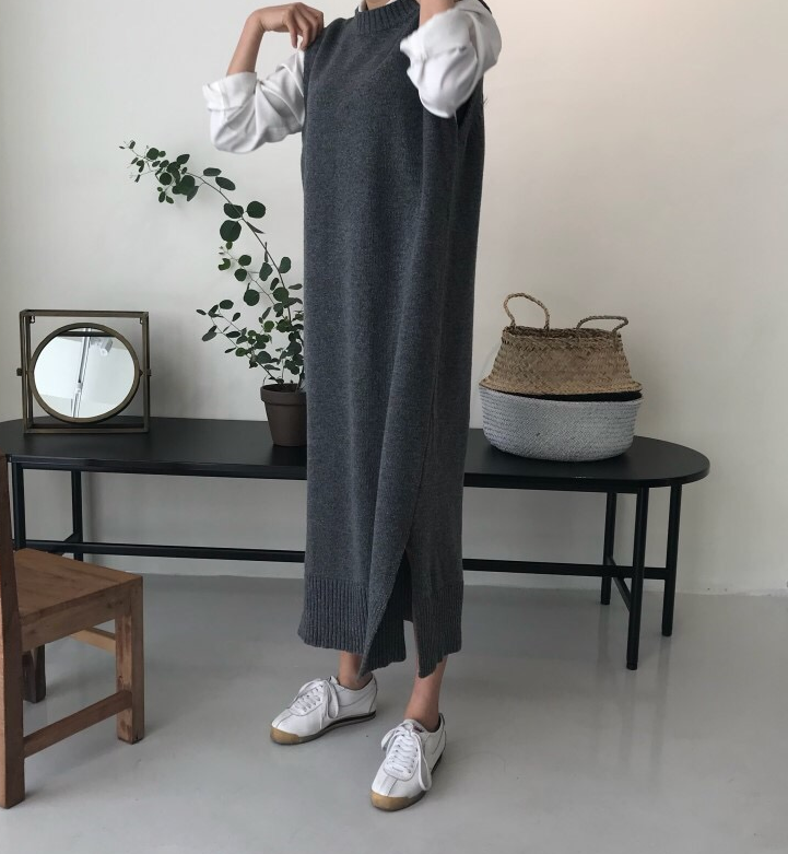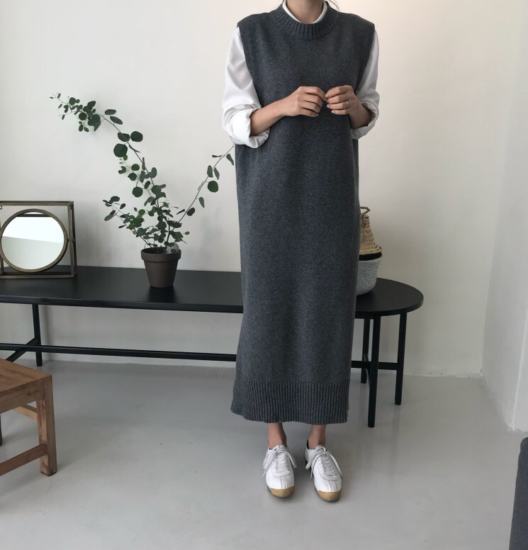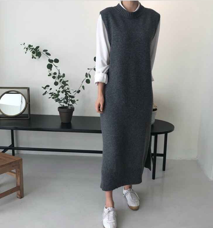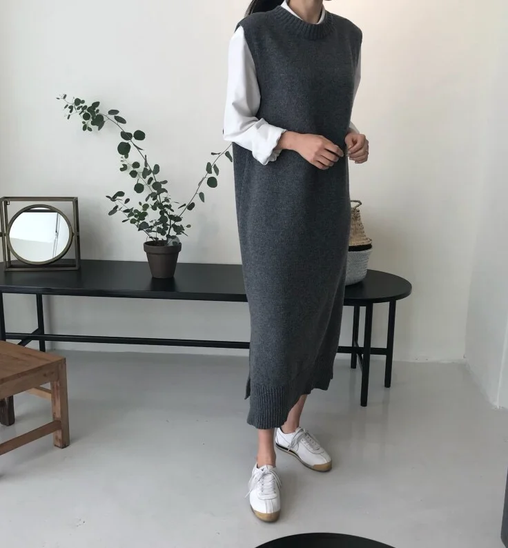 2 цвета, с разрезом сбоку, женский осенне-зимний длинный жилет, платье-свитер, Свободный теплый жилет без рукавов, женские платья, femme vestido