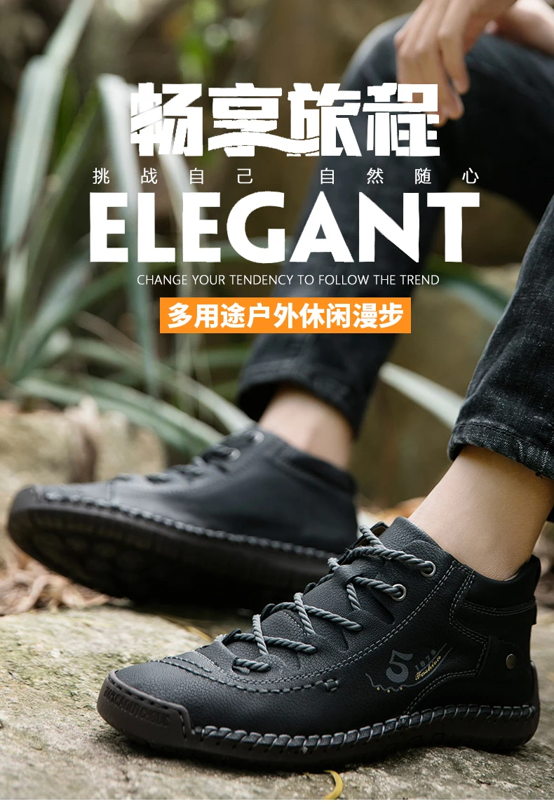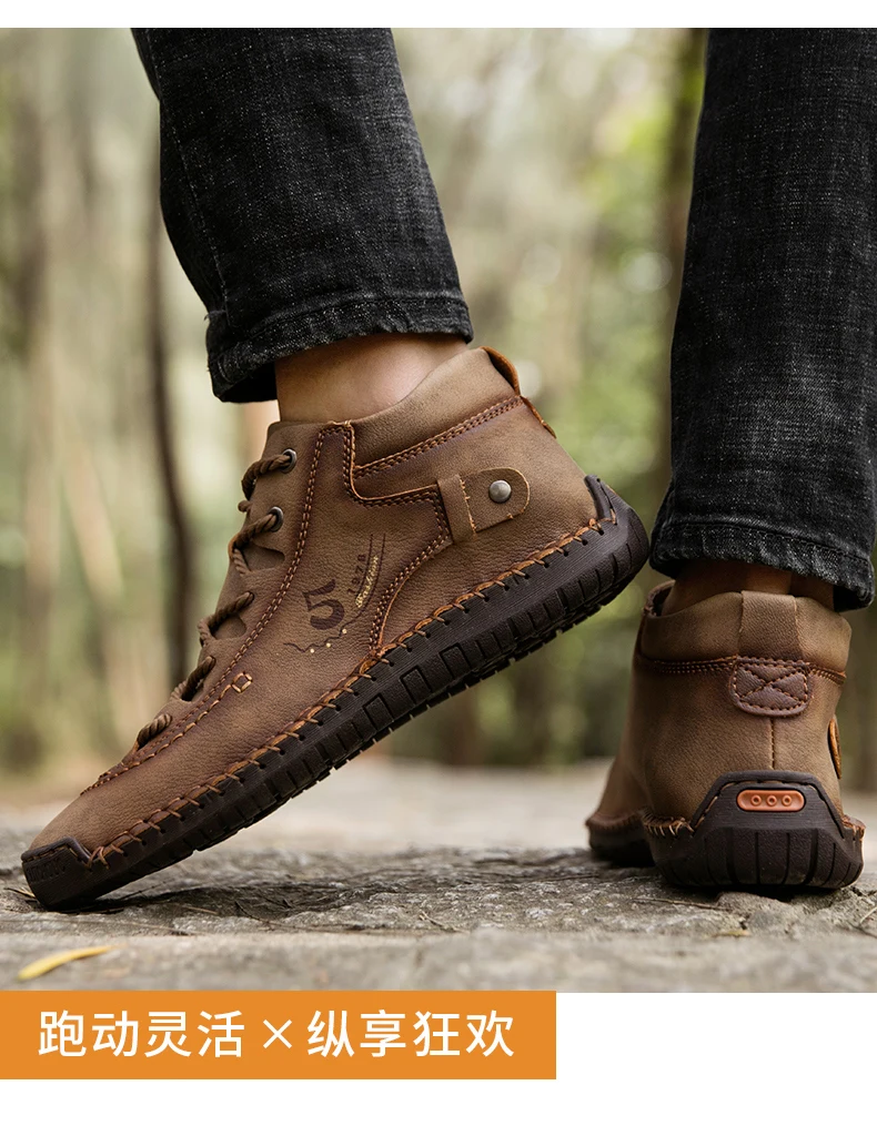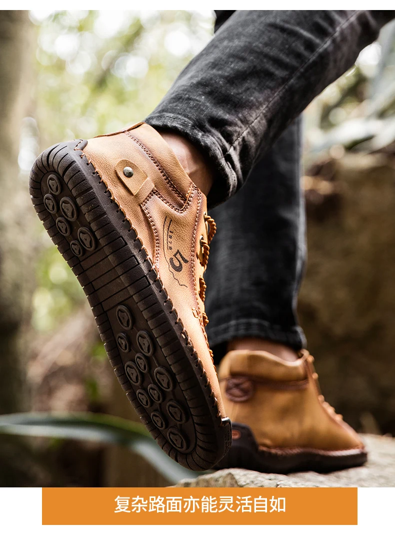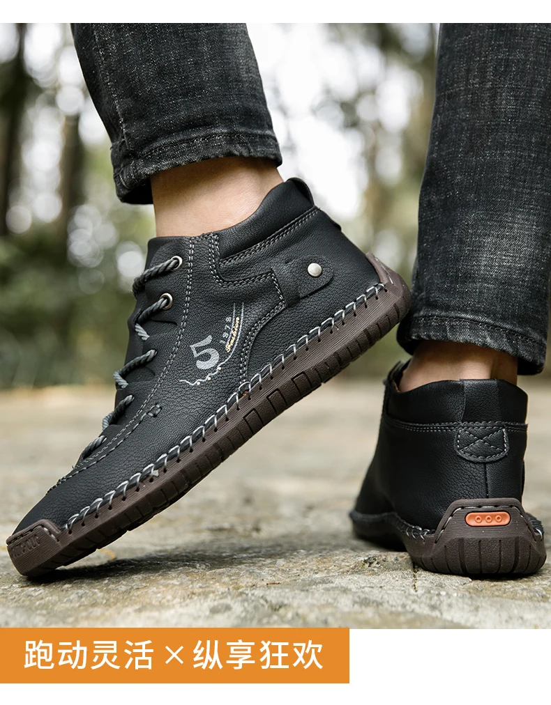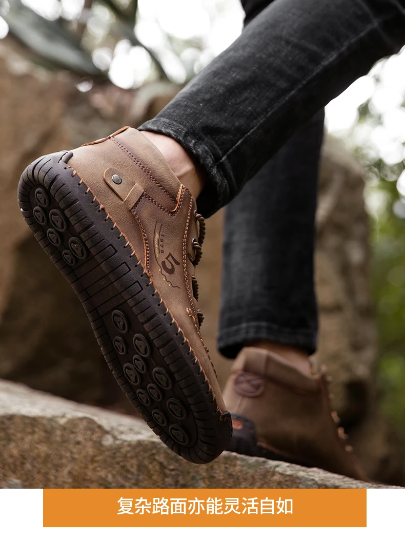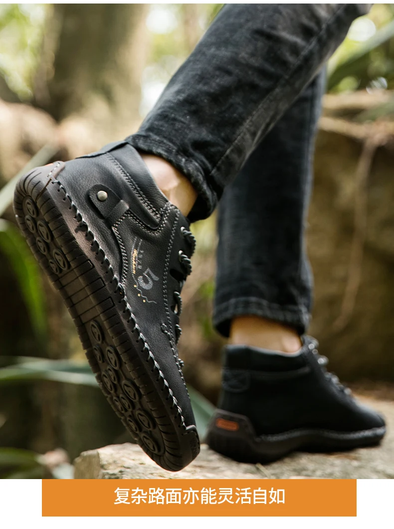 Мужские кожаные ботинки на мягкой подошве, коричневые повседневные ботинки на плоской подошве, теплая обувь для вождения, большой размер 38-48, для зимы, 2019