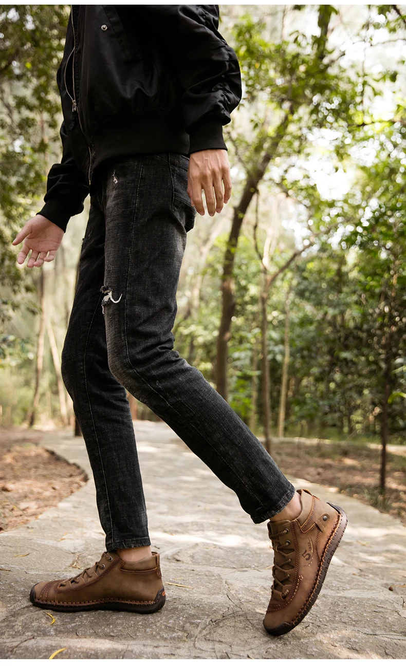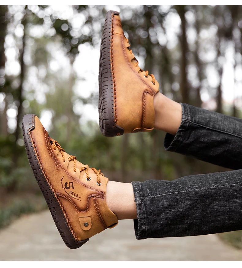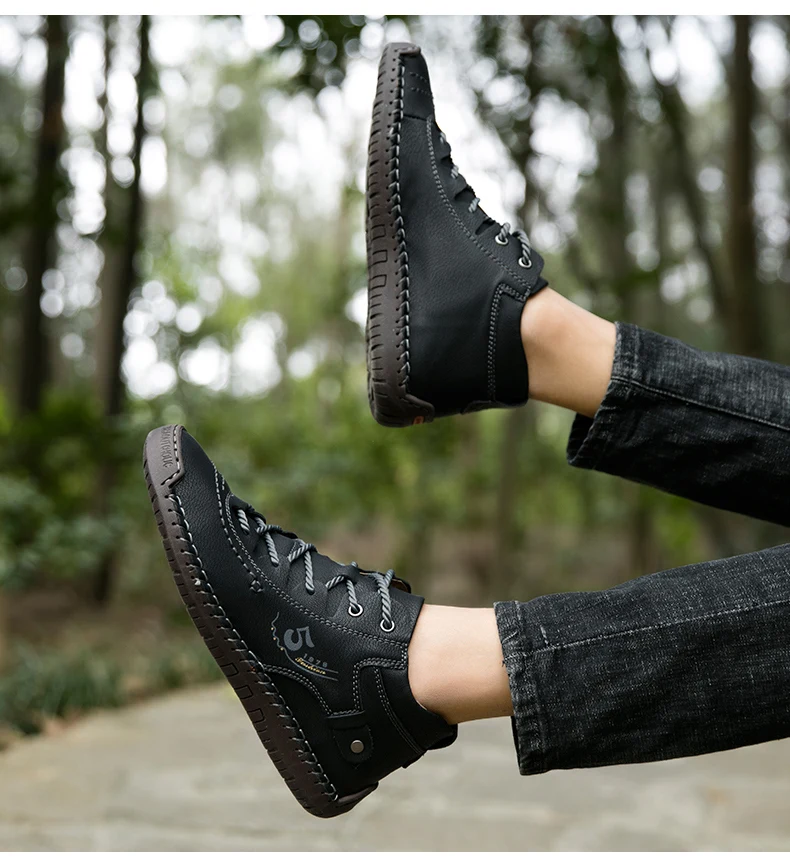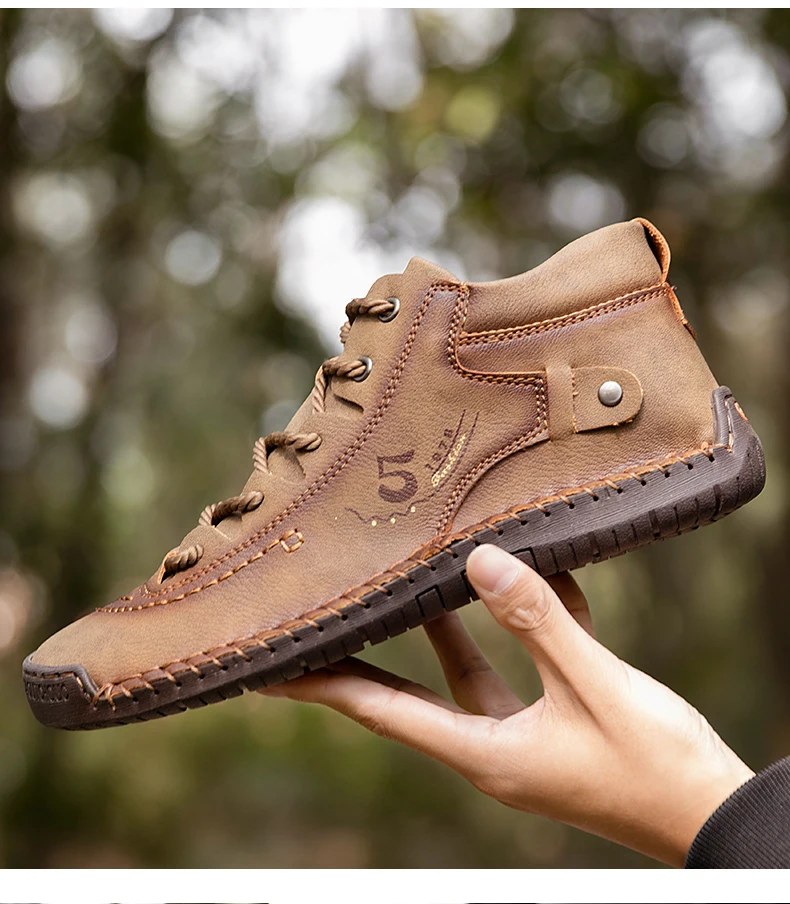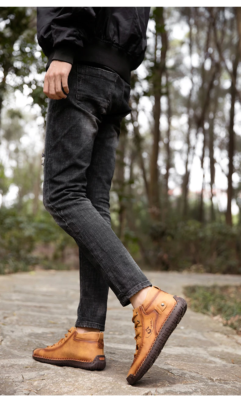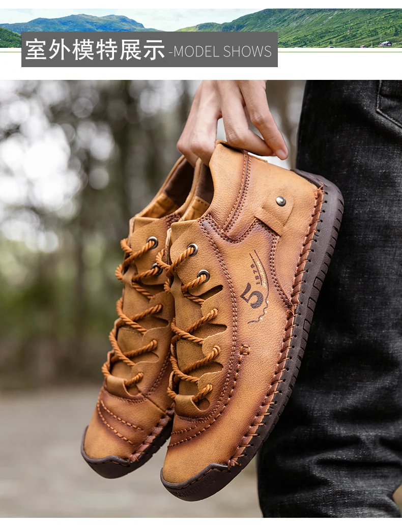 Мужские кожаные ботинки на мягкой подошве, коричневые повседневные ботинки на плоской подошве, теплая обувь для вождения, большой размер 38-48, для зимы, 2019