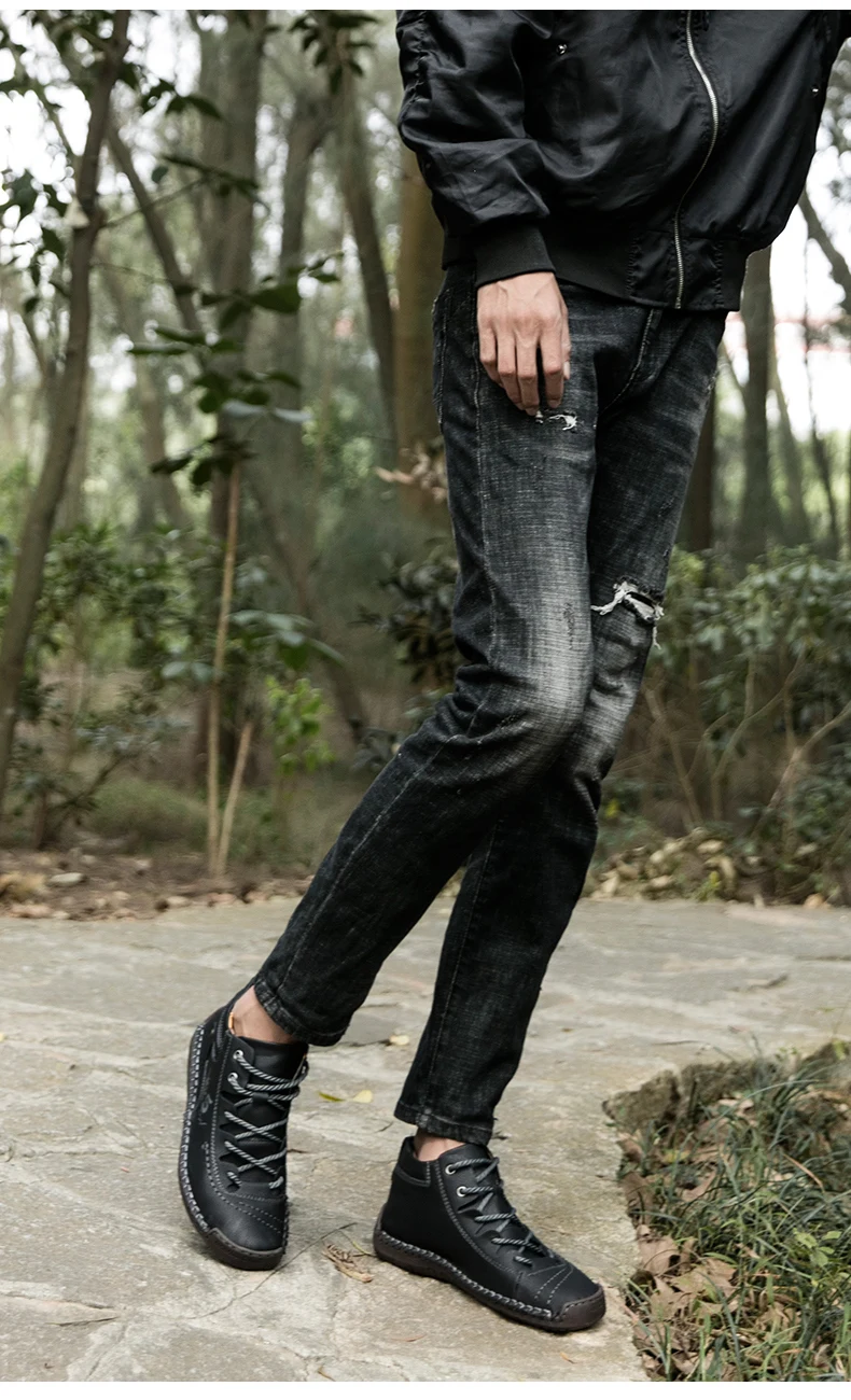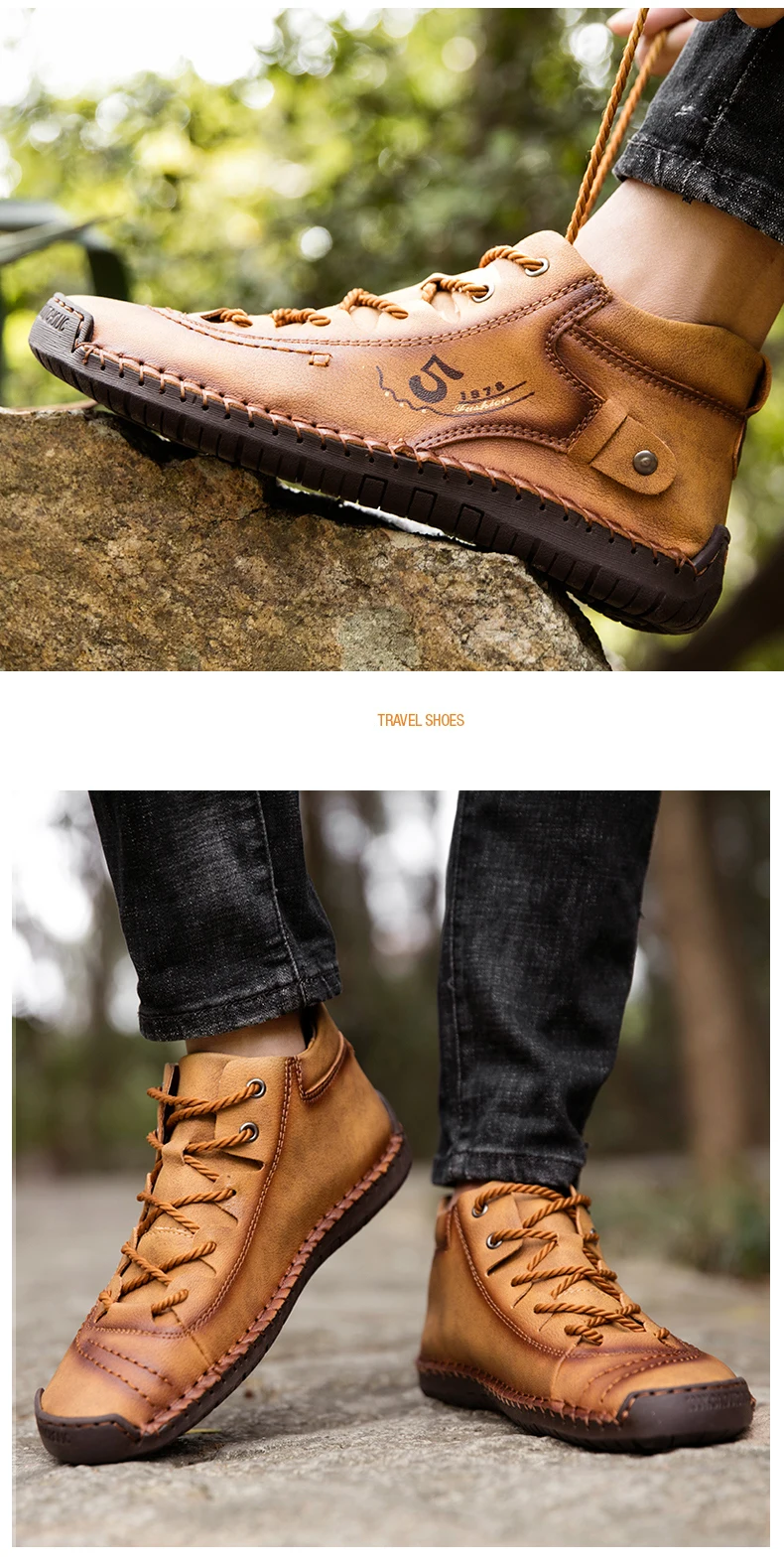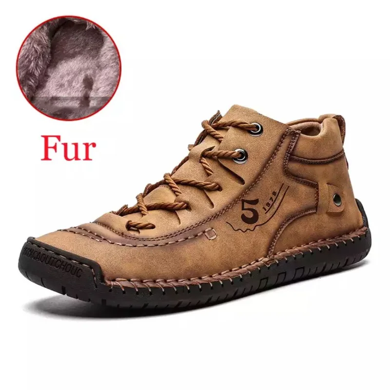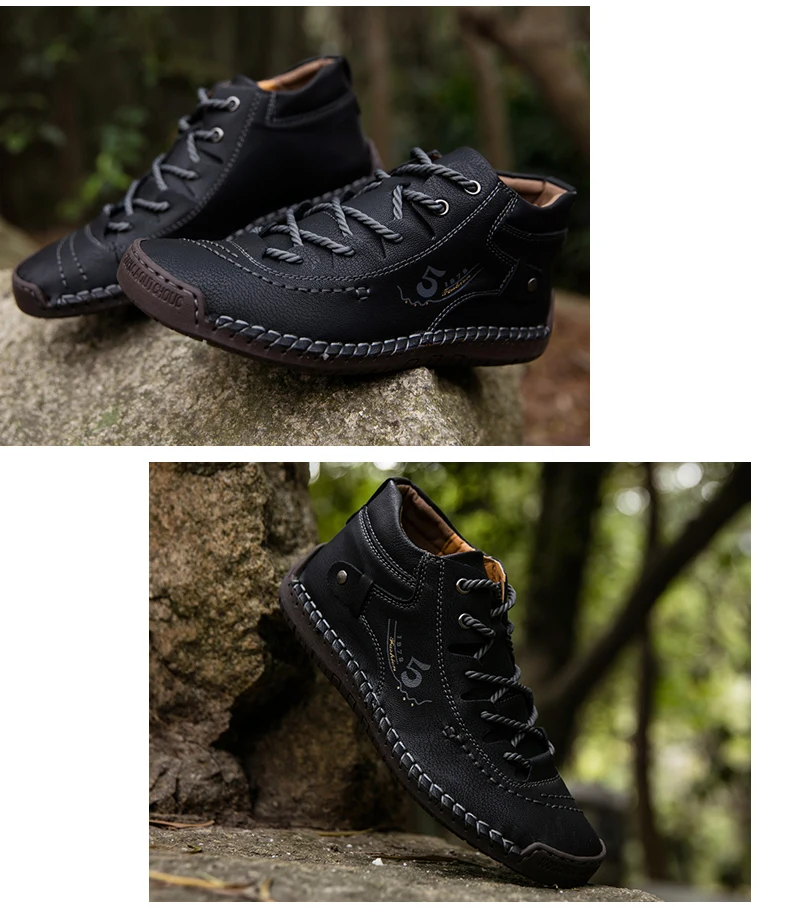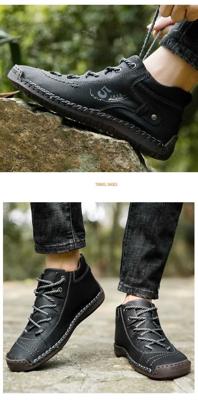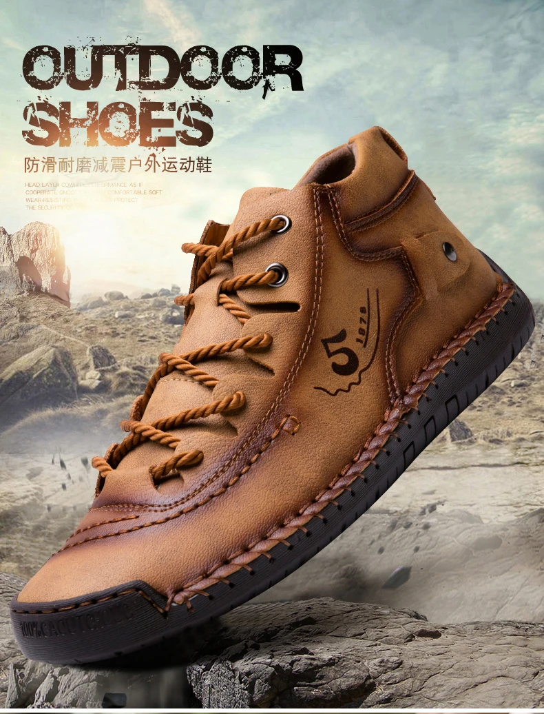 Мужские кожаные ботинки на мягкой подошве, коричневые повседневные ботинки на плоской подошве, теплая обувь для вождения, большой размер 38-48, для зимы, 2019