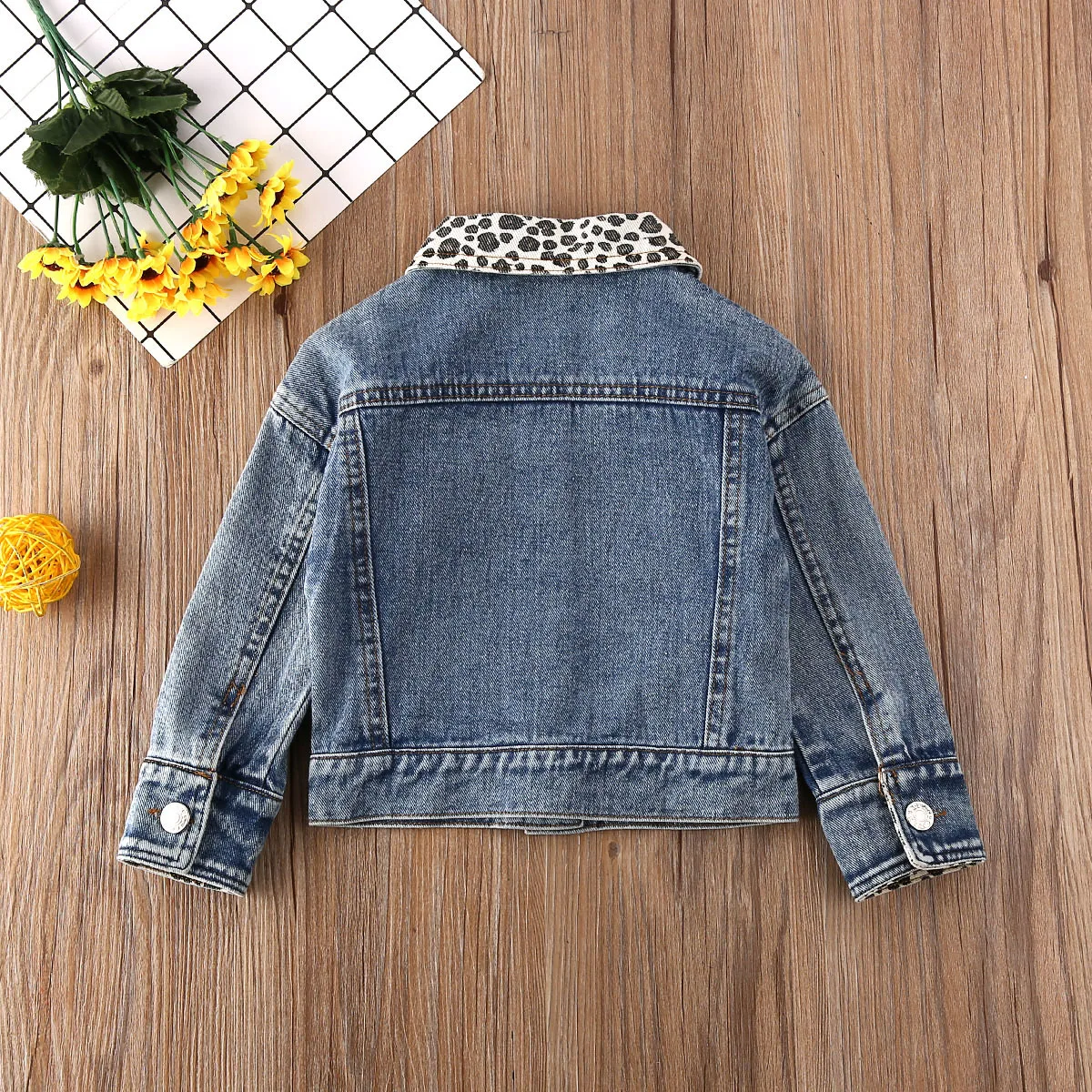 Детская джинсовая куртка, с леопардовым принтом, с длинным рукавом