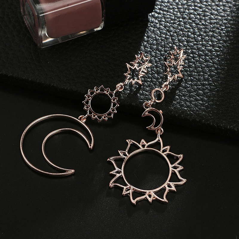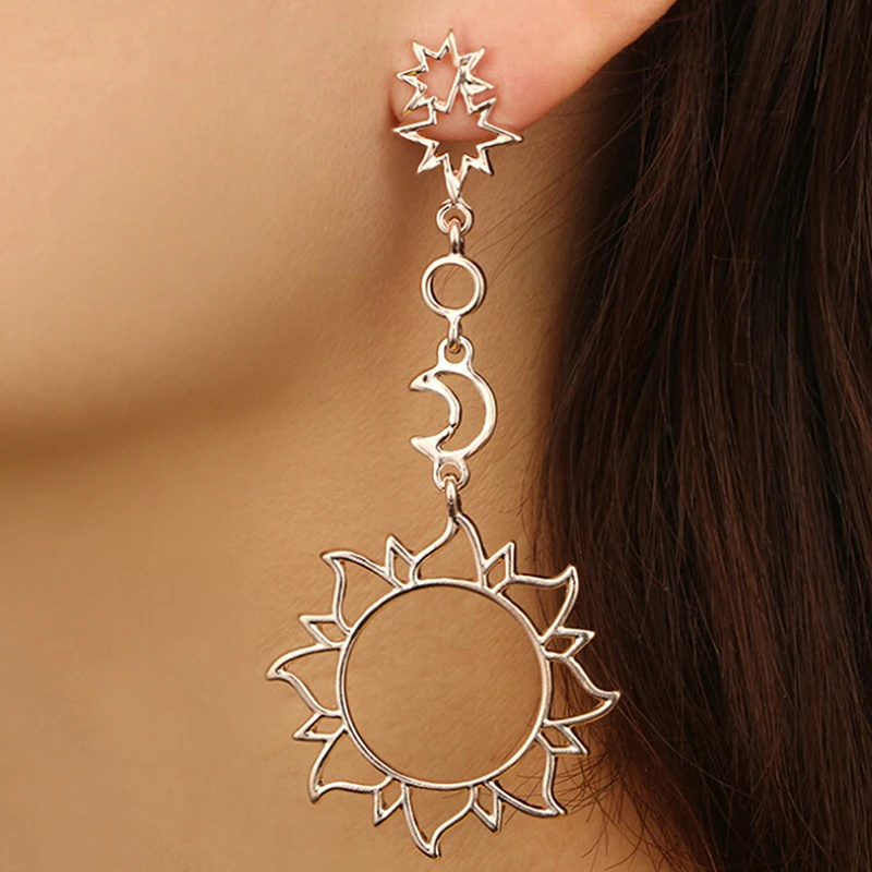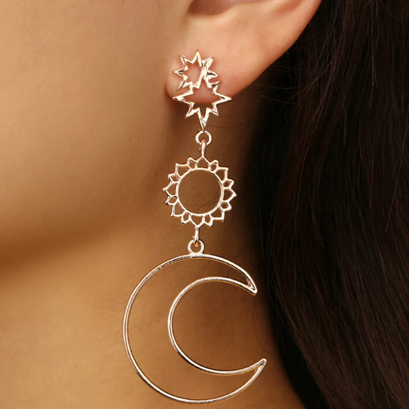 Boho Асимметричные полые звезды Солнце Луна Висячие длинные женские серьги модные серьги для женщин серьги в стиле панк