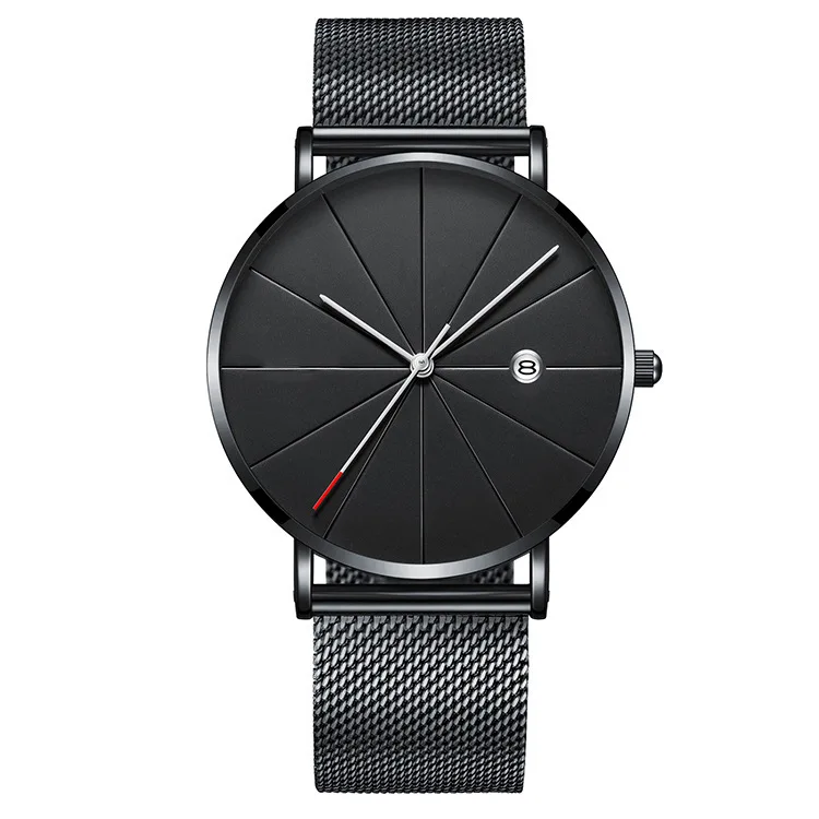 Часы мужские ультратонкие кварцевые с календарем и сетчатым браслет...